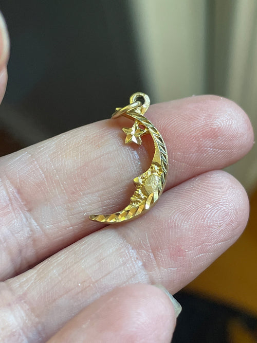 Textured Moon Star Pendant - 14k Gold - Vintage