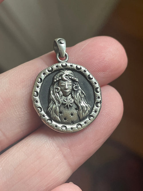 Moon Goddess Medallion Pendant -Sterling Silver - Handmade