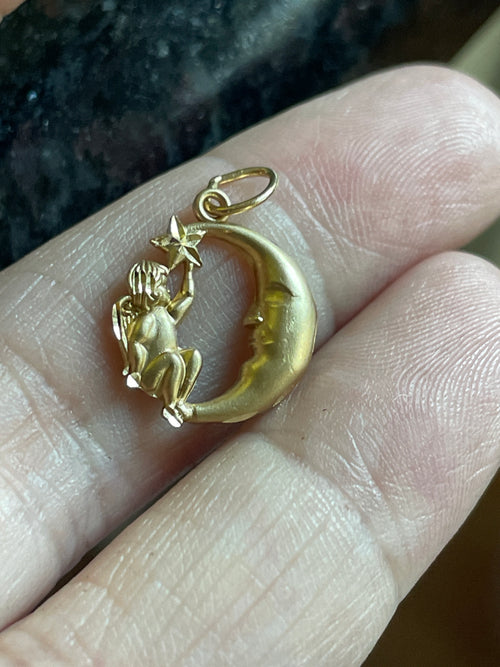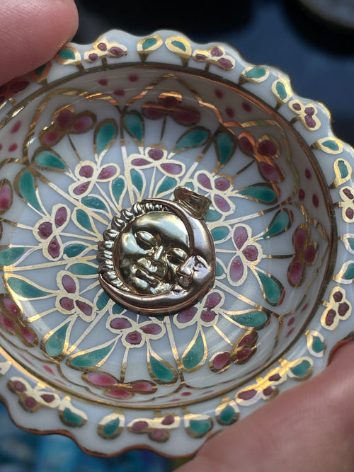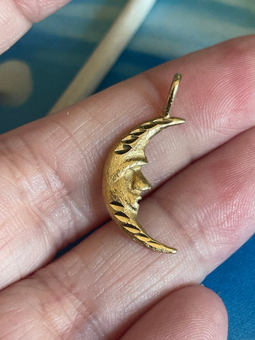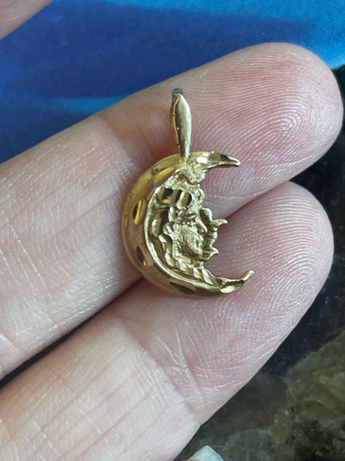 Tiny Moon Goddess Pendant - 14k Gold - Vintage