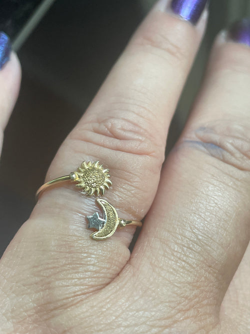 Sun Moon Star Bypass Ring - 14k Gold - Vintage