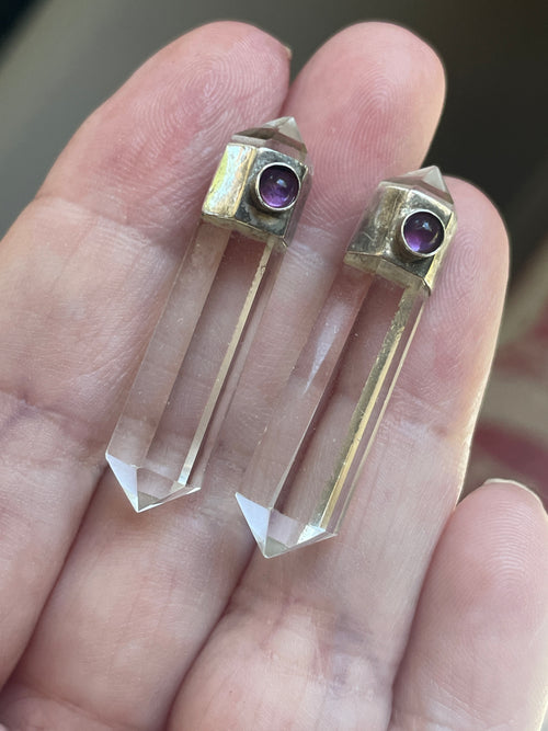 Star Drop Gemstone Earrings - Ametrine, Lavender Moon Quartz and Coral - Sterling Silver - Handmade