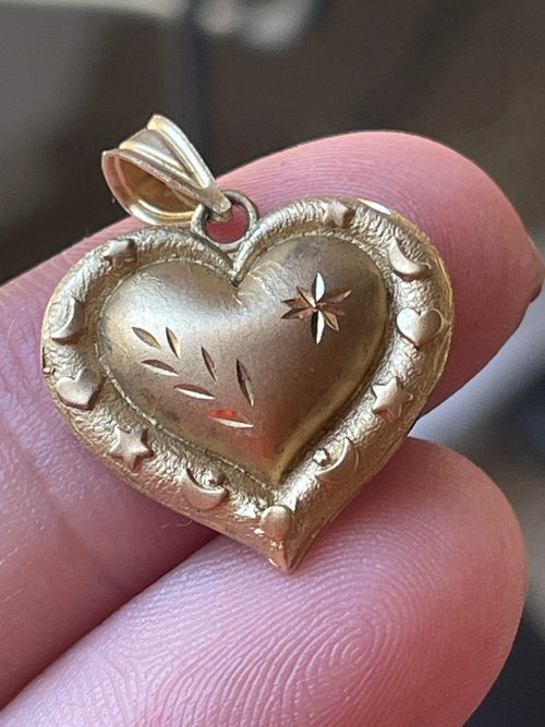 Puffy Star Heart Pendant - 10k Gold - Vintage