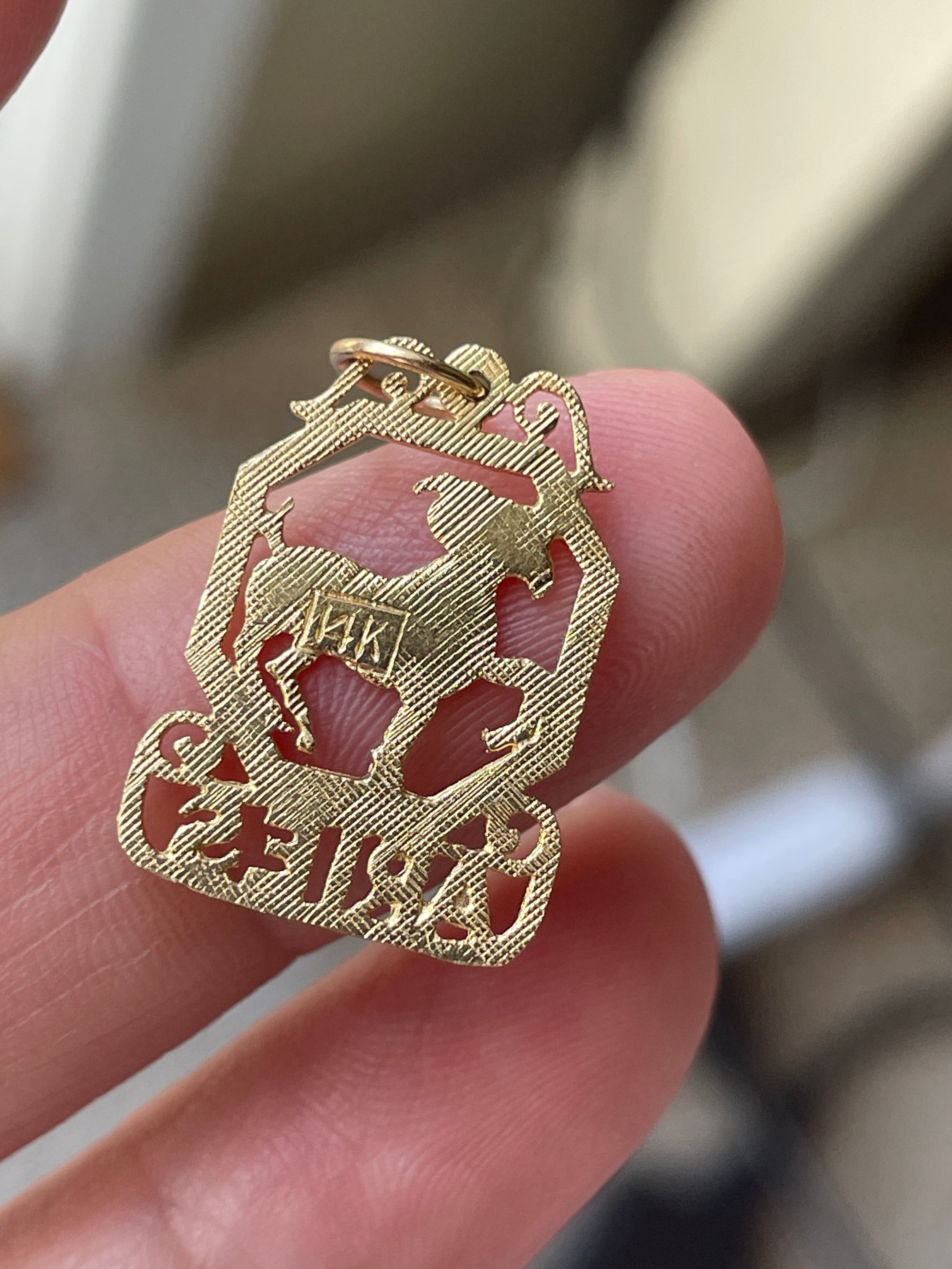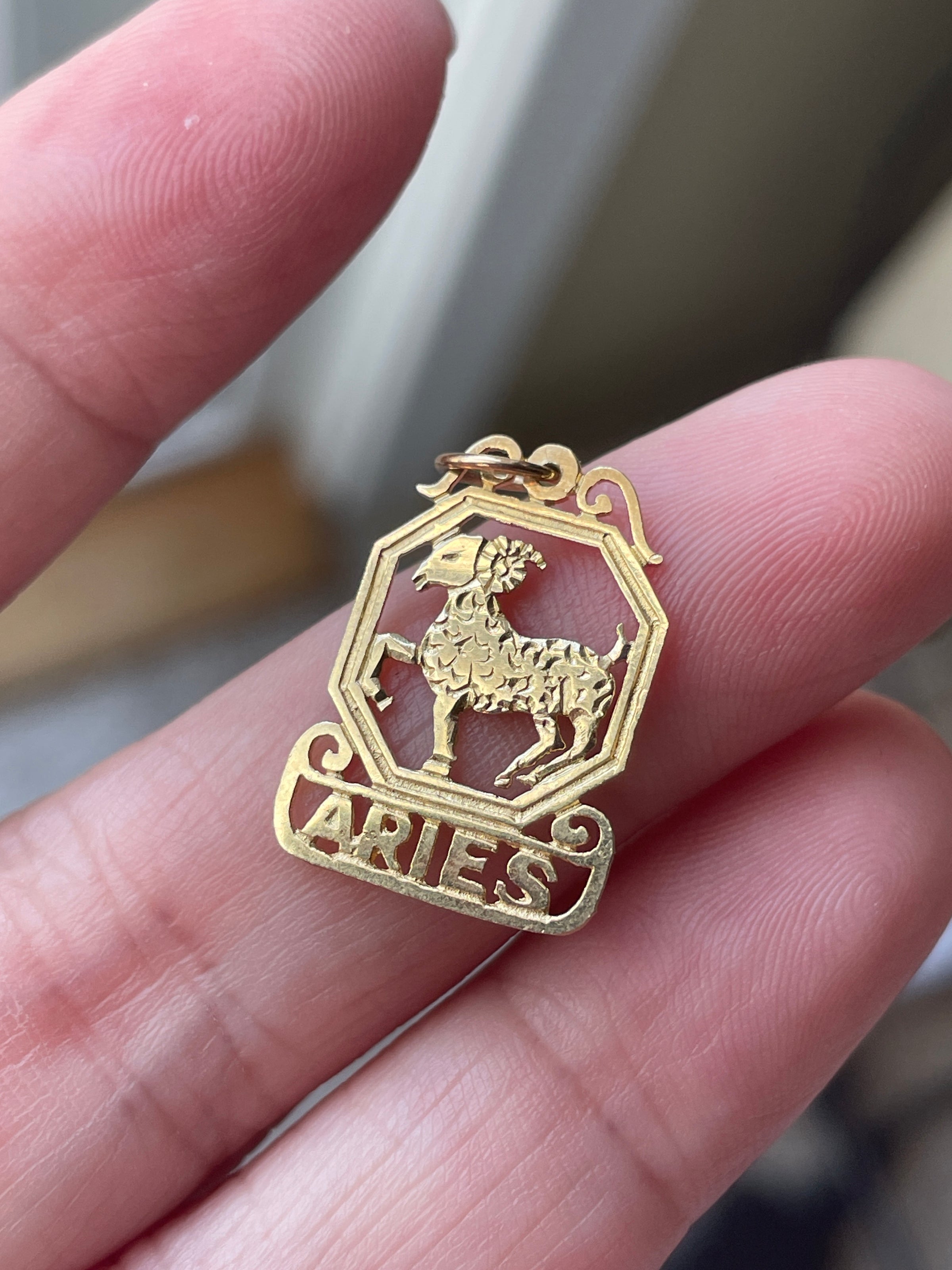 Beautiful vintage 14k gold openwork Aries pendant. Measures just over 0.75 inches (with top loop) x 13mm. Stamped 14k on back.
