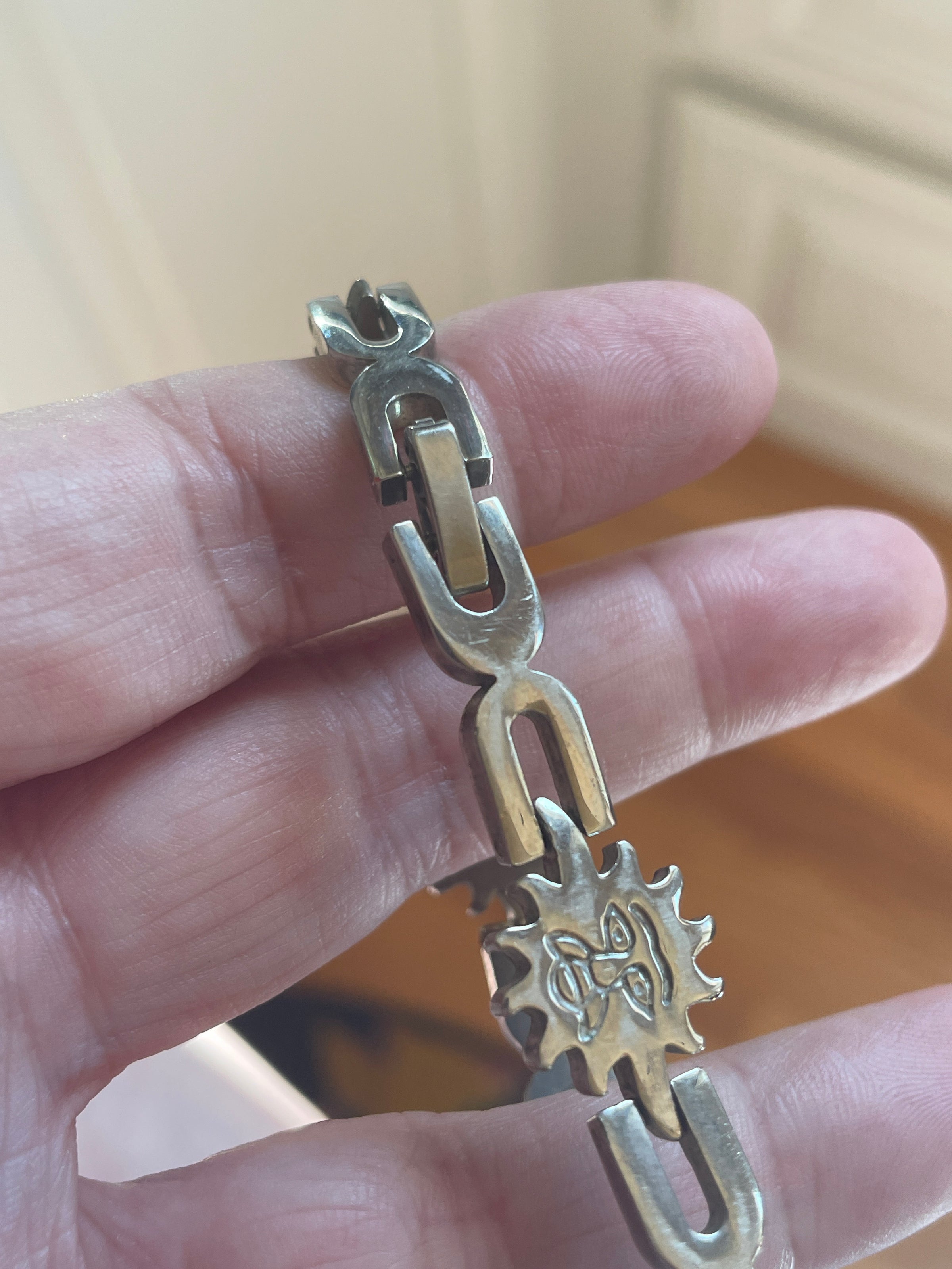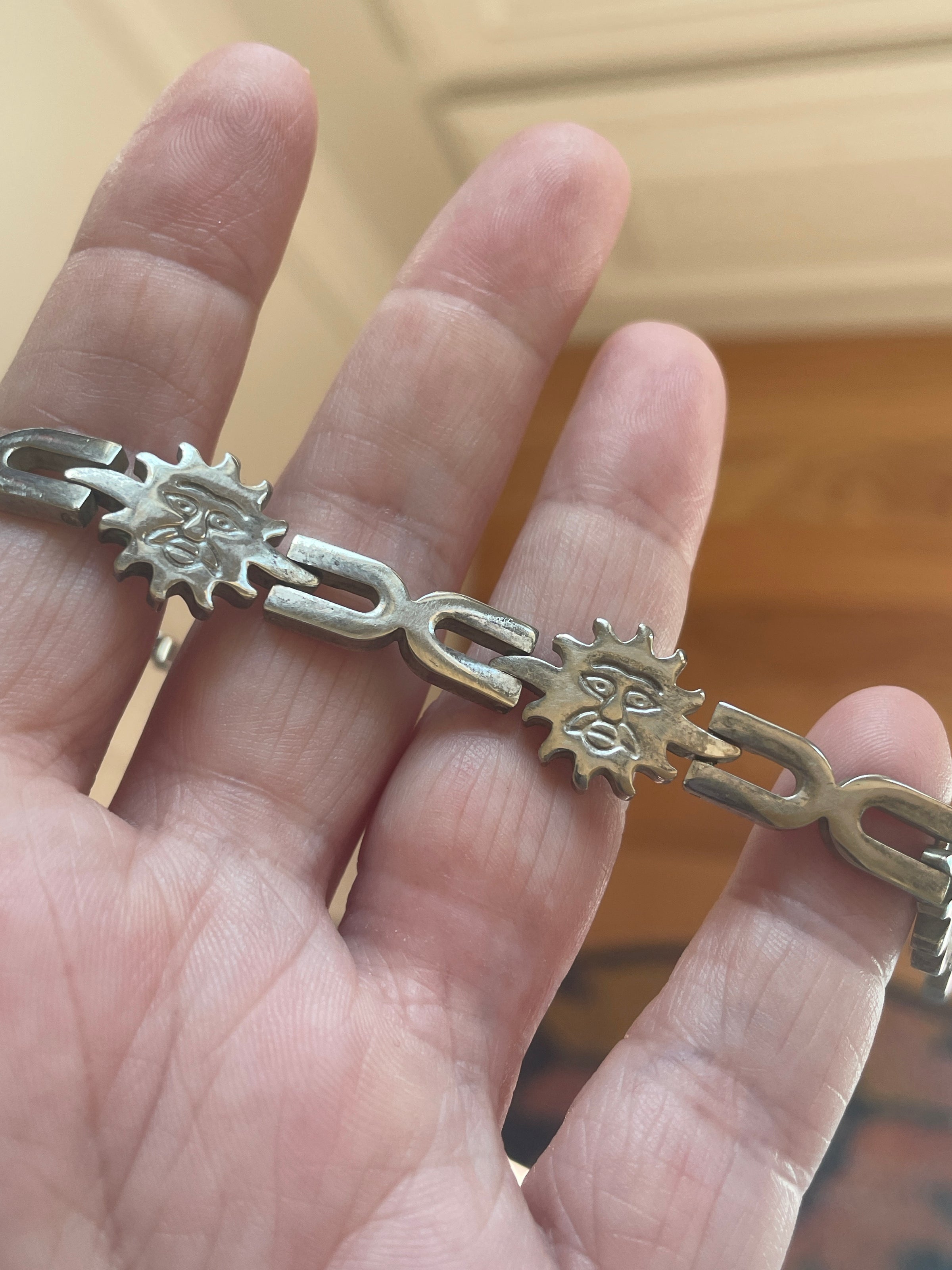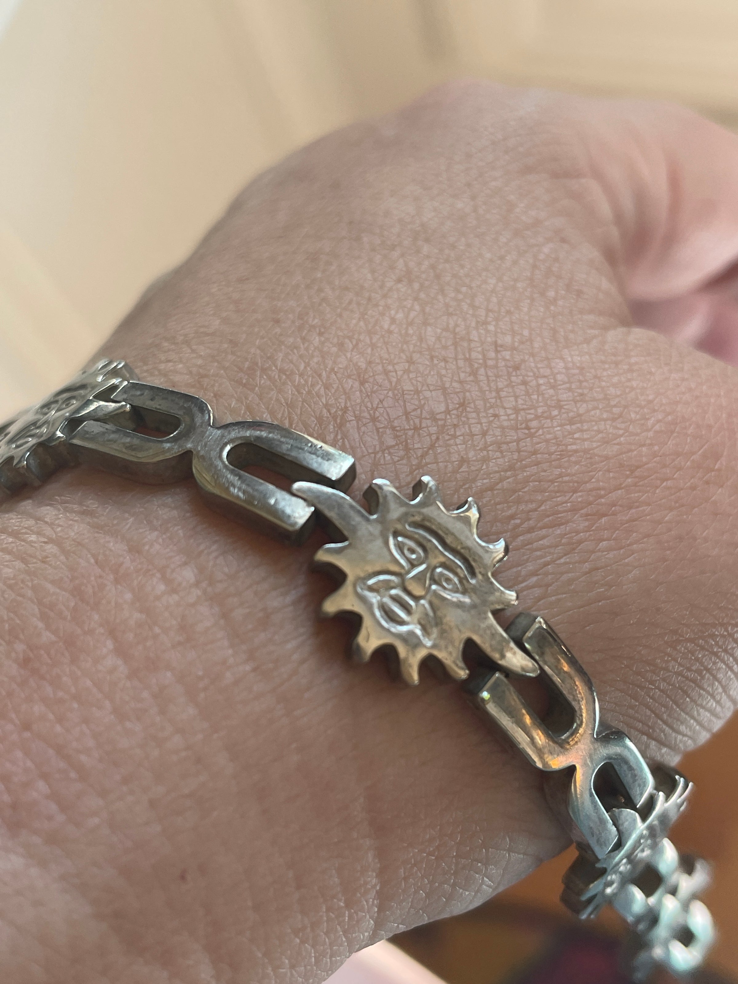 Fabulous vintage Sun bracelet in sterling silver with gorgeous Sun links. Bracelet measures approx 7.5 inches. Stamped 925 for sterling.