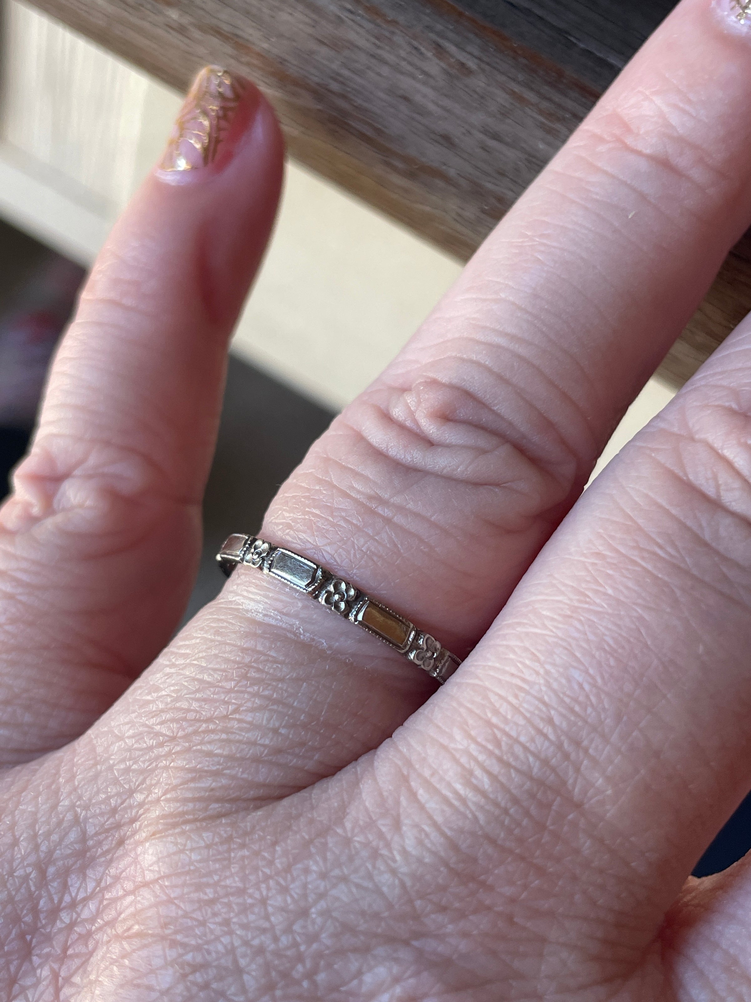 Our vintage and antique rings collection includes a variety of styles of rings. We feature vintage wedding rings in many styles, including eternity bands, gold vintage wedding bands, solitaire rings (including Diamonds), right-hand rings, and rings for daily wear. Our rings are treasures from the past in rose gold, white gold, yellow gold (in various carats), platinum, and sterling silver. Stones include Aquamarine, Amethyst, Citrine, Chrysoprase, Garnet, Moonstone, Opal, Peridot, Ruby, Sapphire, Turquoise, and many others.