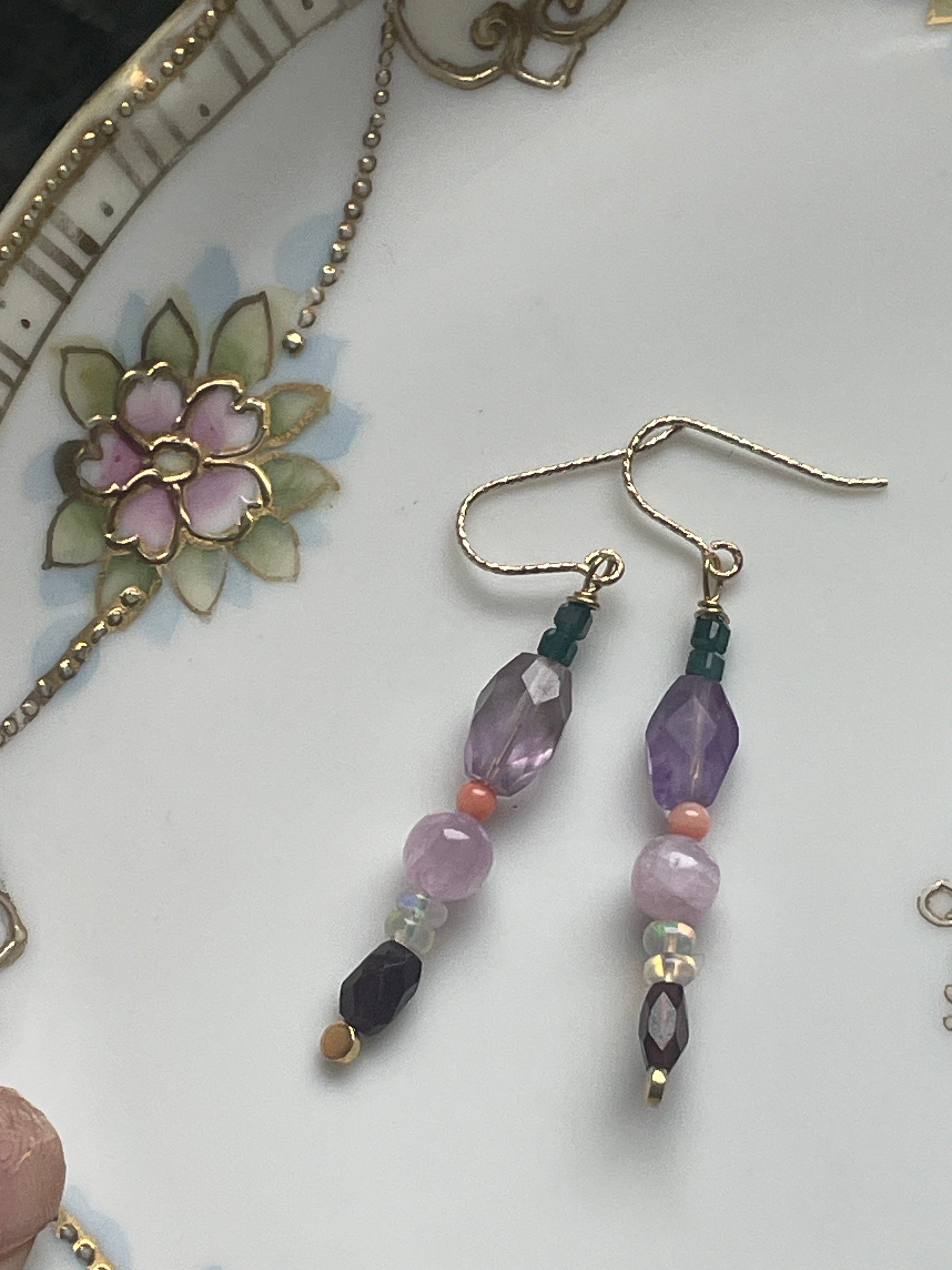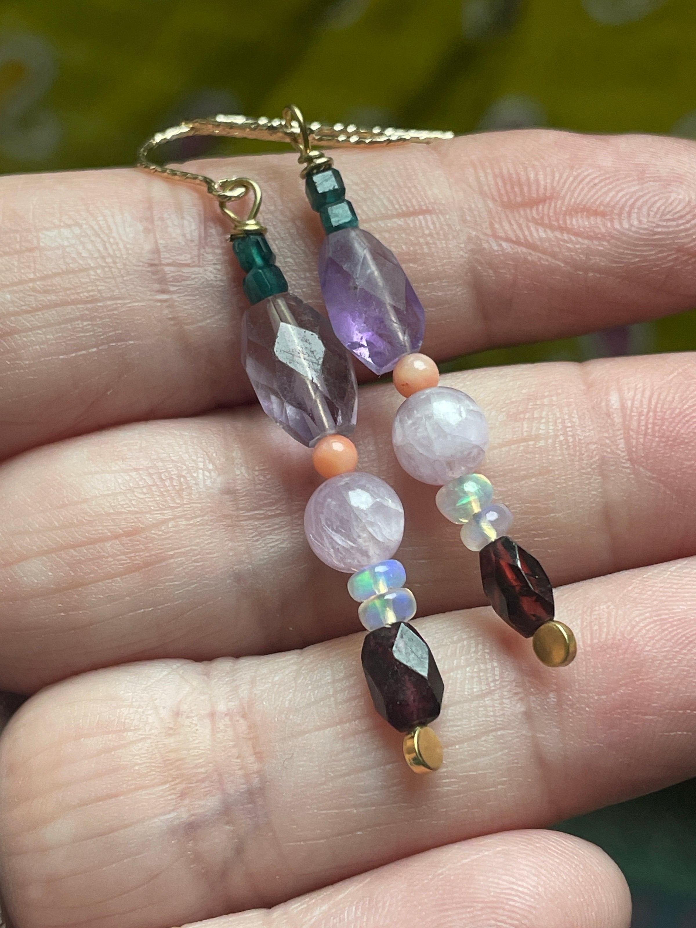 Bohemian Gemstone Earrings - Amethyst, Garnet, Opal, Coral and Grandidierite - Vermeil and Gold Filled - Handmade