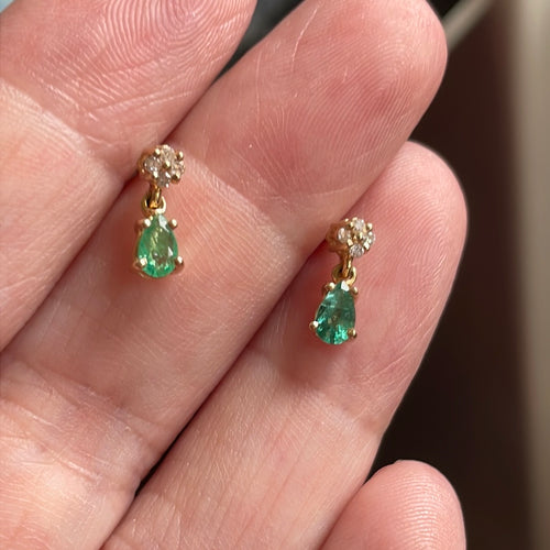 Emerald Huggie Hoop Earrings - 14k Gold - Vintage - As Found