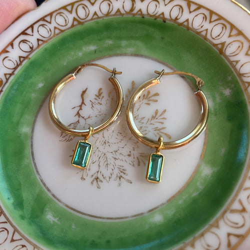 Emerald Half Hoop Earrings - 14k Gold - Vintage