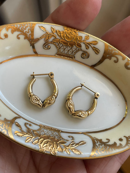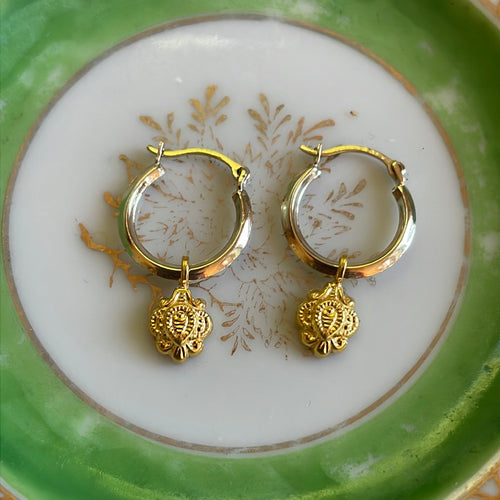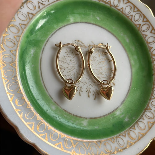 Dainty Opal Heart Hoop Earrings - 14k Gold - Vintage
