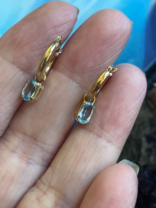 Aquamarine Earrings - Emerald Cut - 14k Gold - Vintage