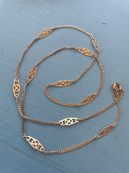 Long Curb Chain - Seed Pearl and Garnet Slide - Gold Filled - Antique
