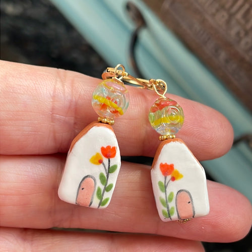Enamel Tulip Earrings - 835 Silver - Vintage