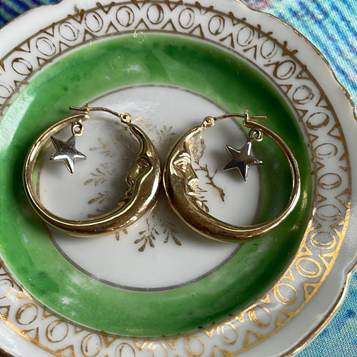 Moon Star Hoop Earrings - 14k Gold - Vintage