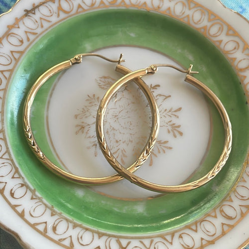 Ridged Hoop Earrings - 9k Gold - Vintage