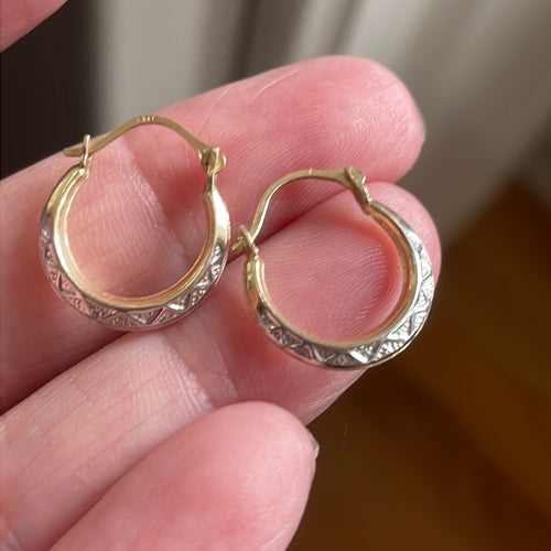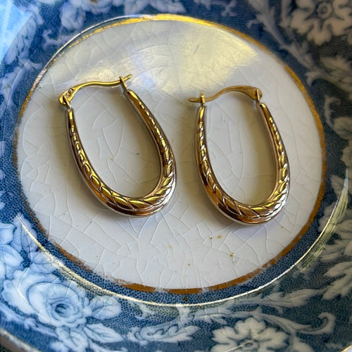 Rectangular Hoop Earrings - 14k White and Yellow Gold - Vintage
