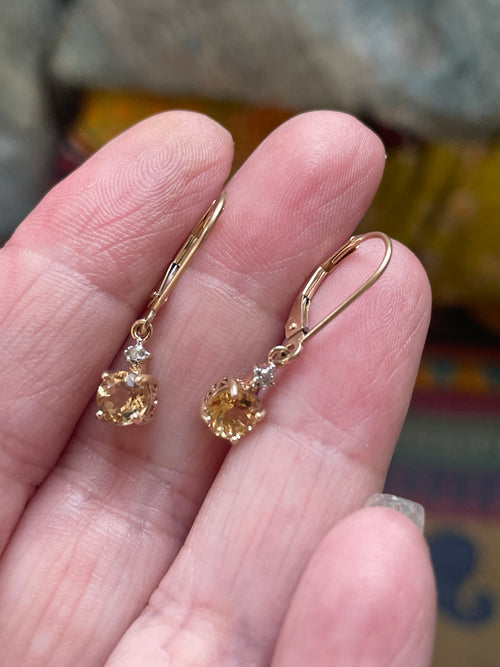 Citrine Lantern Drop Earrings - Mexican Fire Opal, Coral and Mandarin Garnet - Gold Filled - Handmade