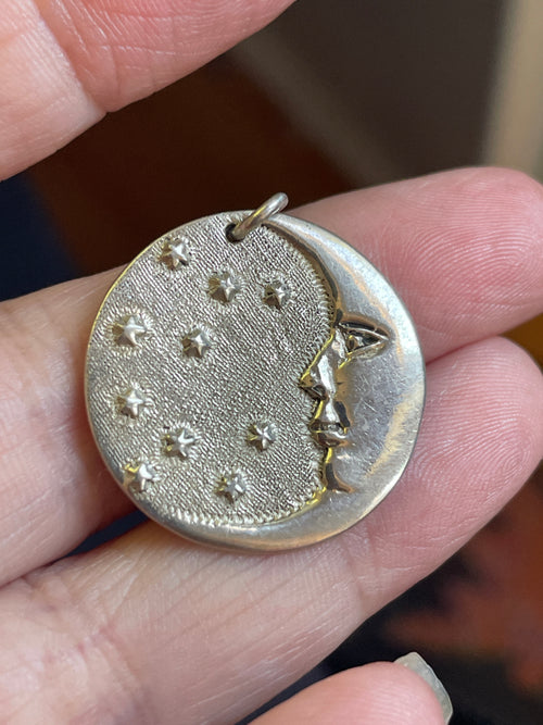 Moon Necklace - CZ Star - 10k Gold - Gold Filled Chain - Vintage