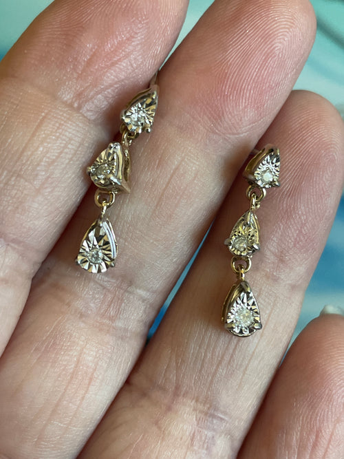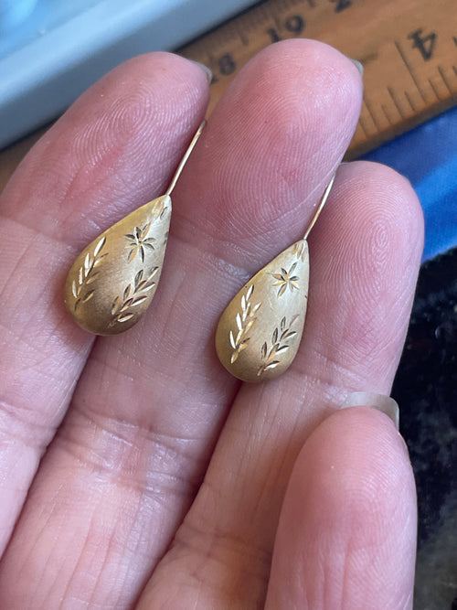 Puffy Heart Drop Earrings - 14k Gold - Vintage