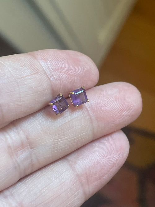 Emerald Earrings - Square Cut - 14k White Gold - Vintage