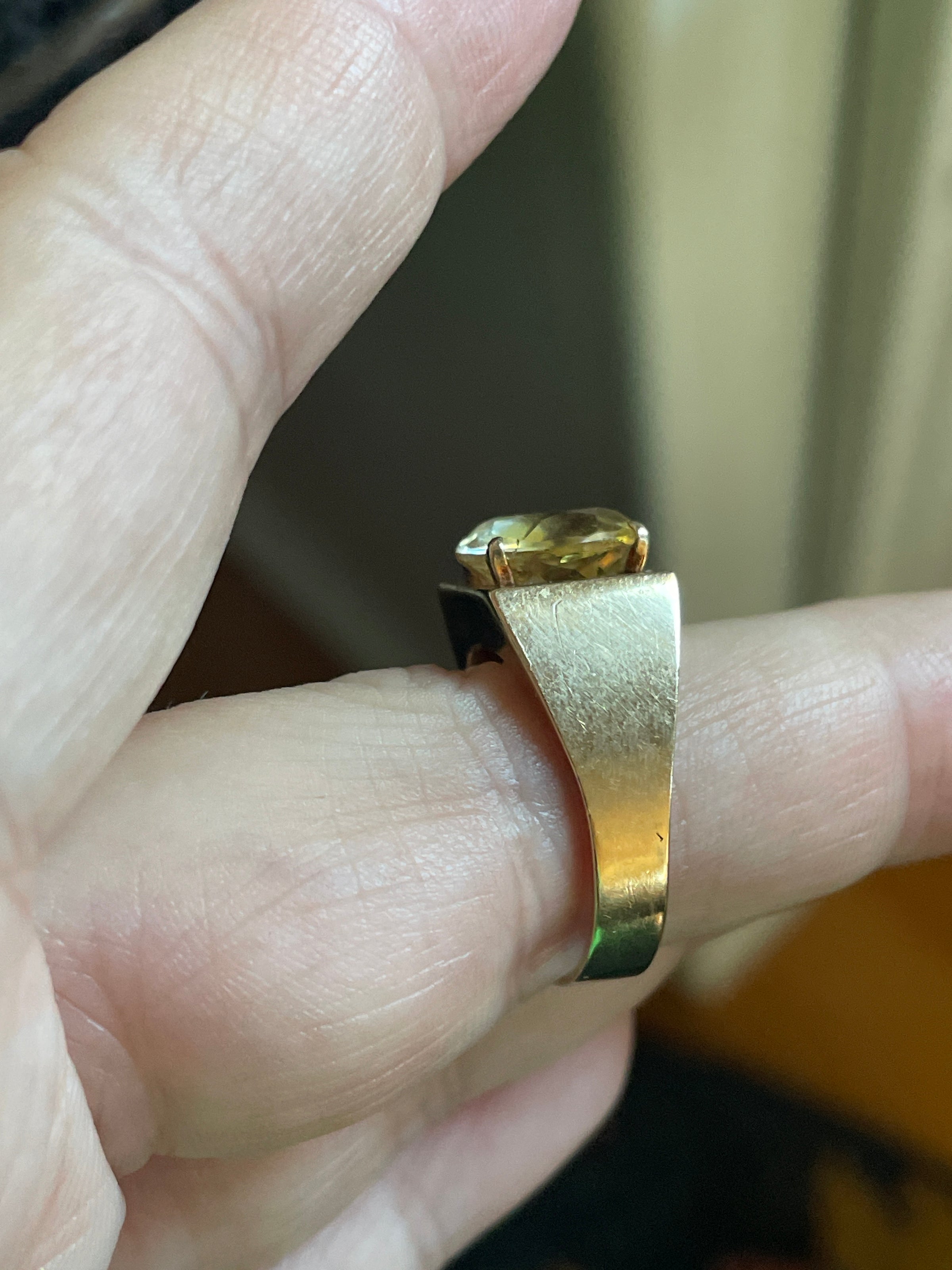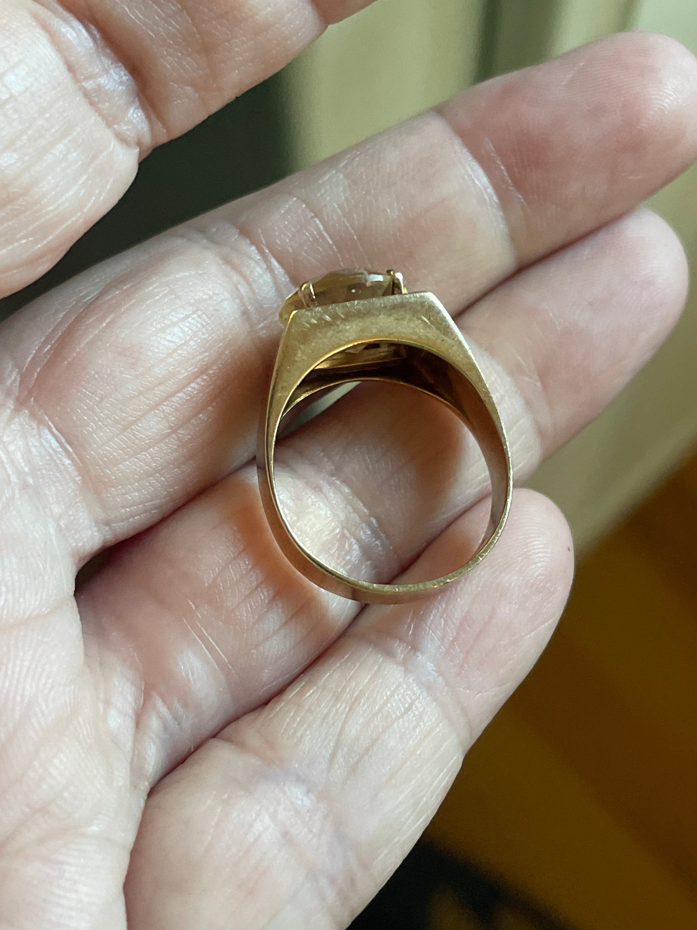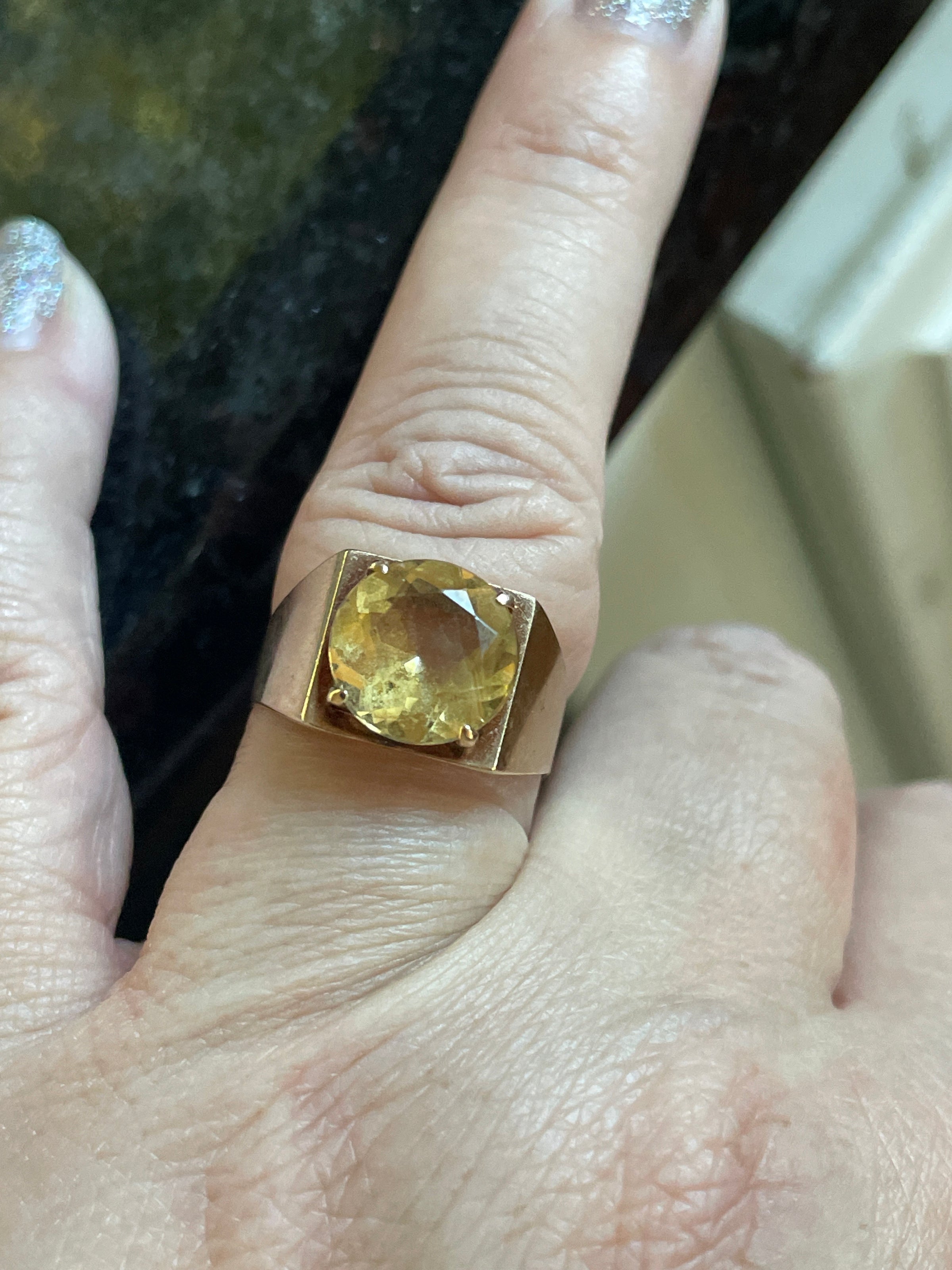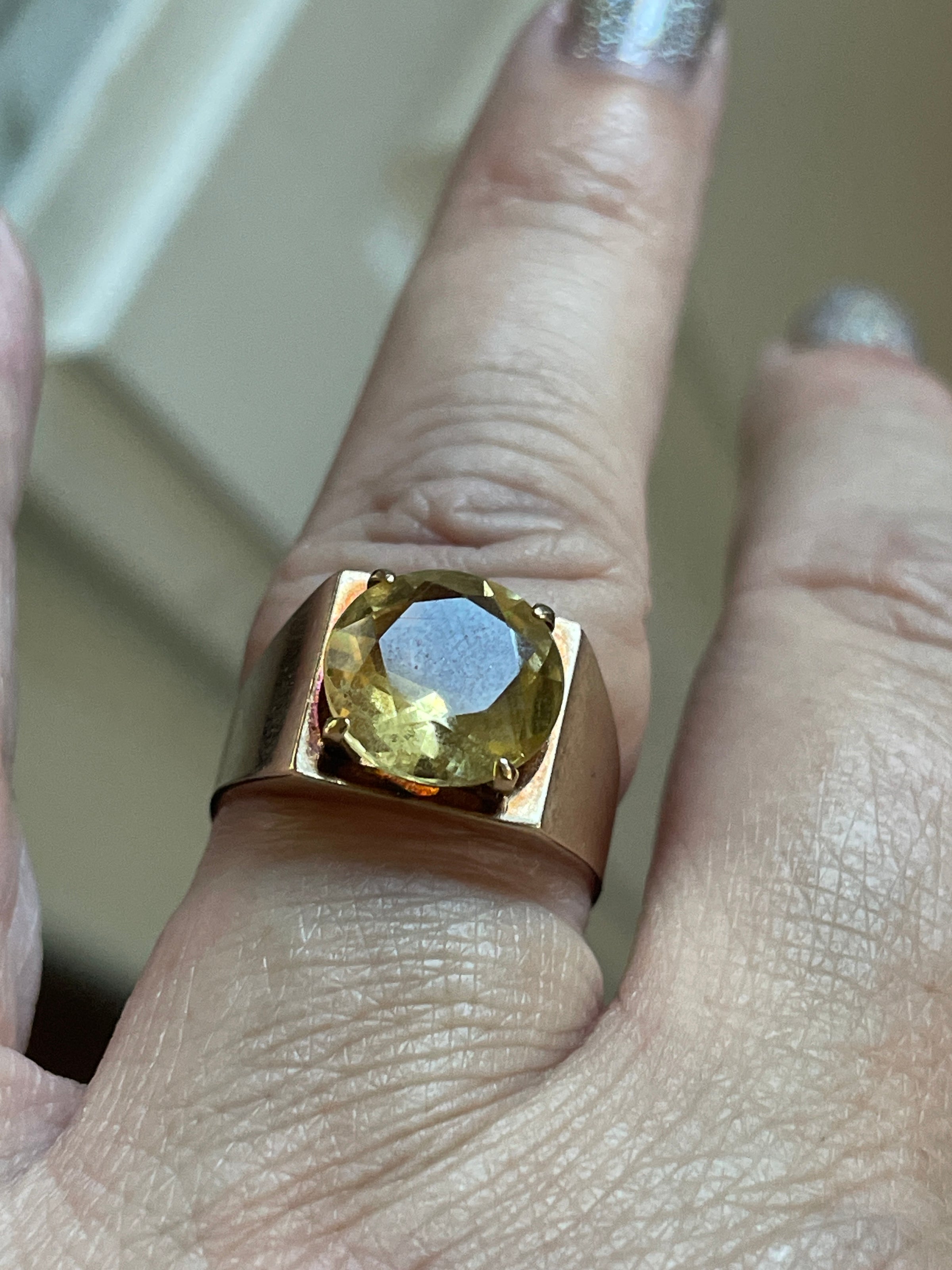 Beyond stunning huge Citrine signet ring in 9k gold. Ring has such great finger presence. Ring size = 7.25. Full British hallmarks including 375 for 9k. Weighs 4.43 grams.