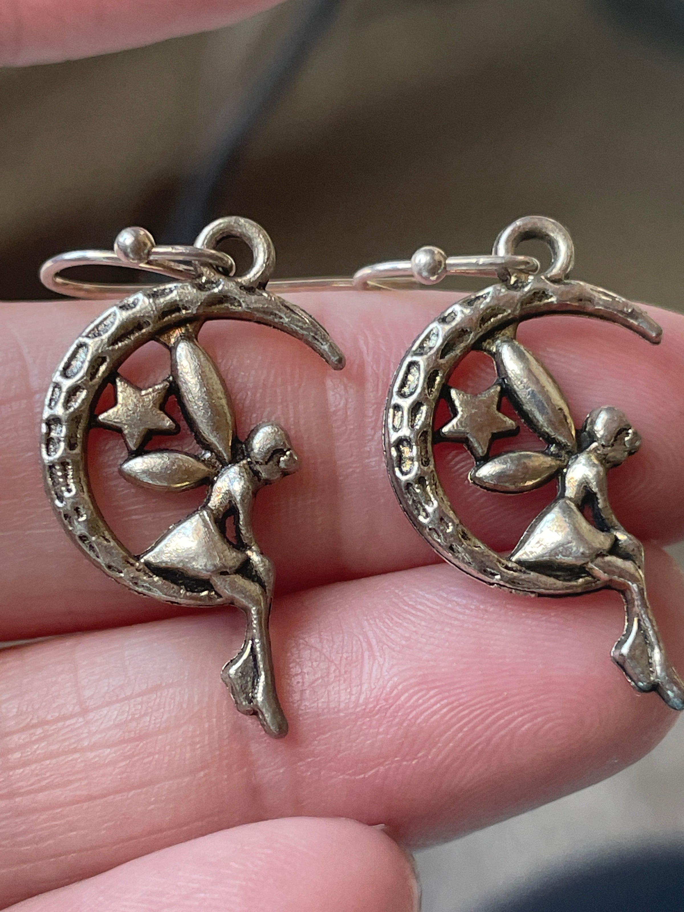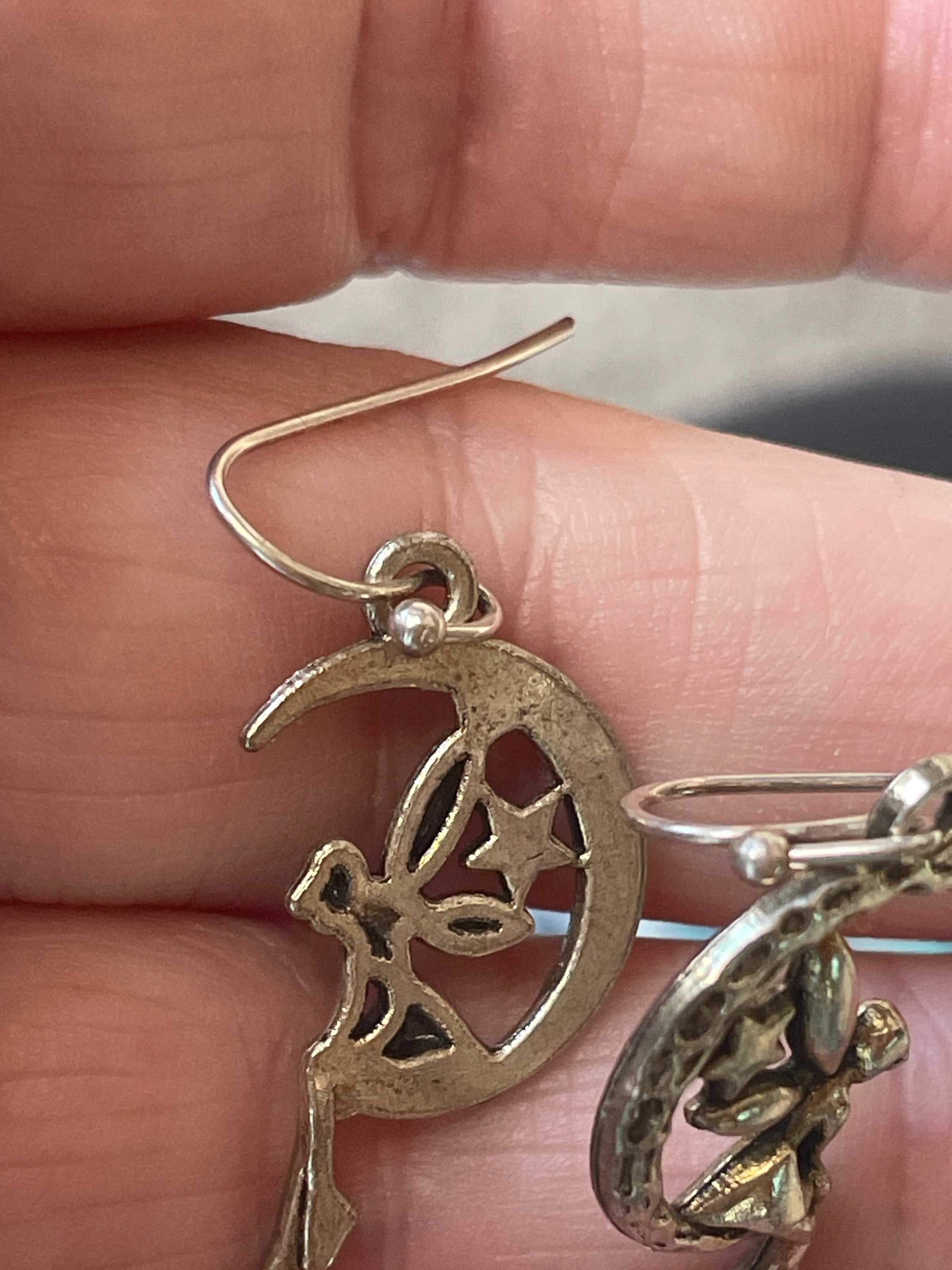 Adorable vintage Fairy Moon earrings.  Unsure of metal content as they are unmarked and untested.  They measure approx 1.25 inches with earwires.