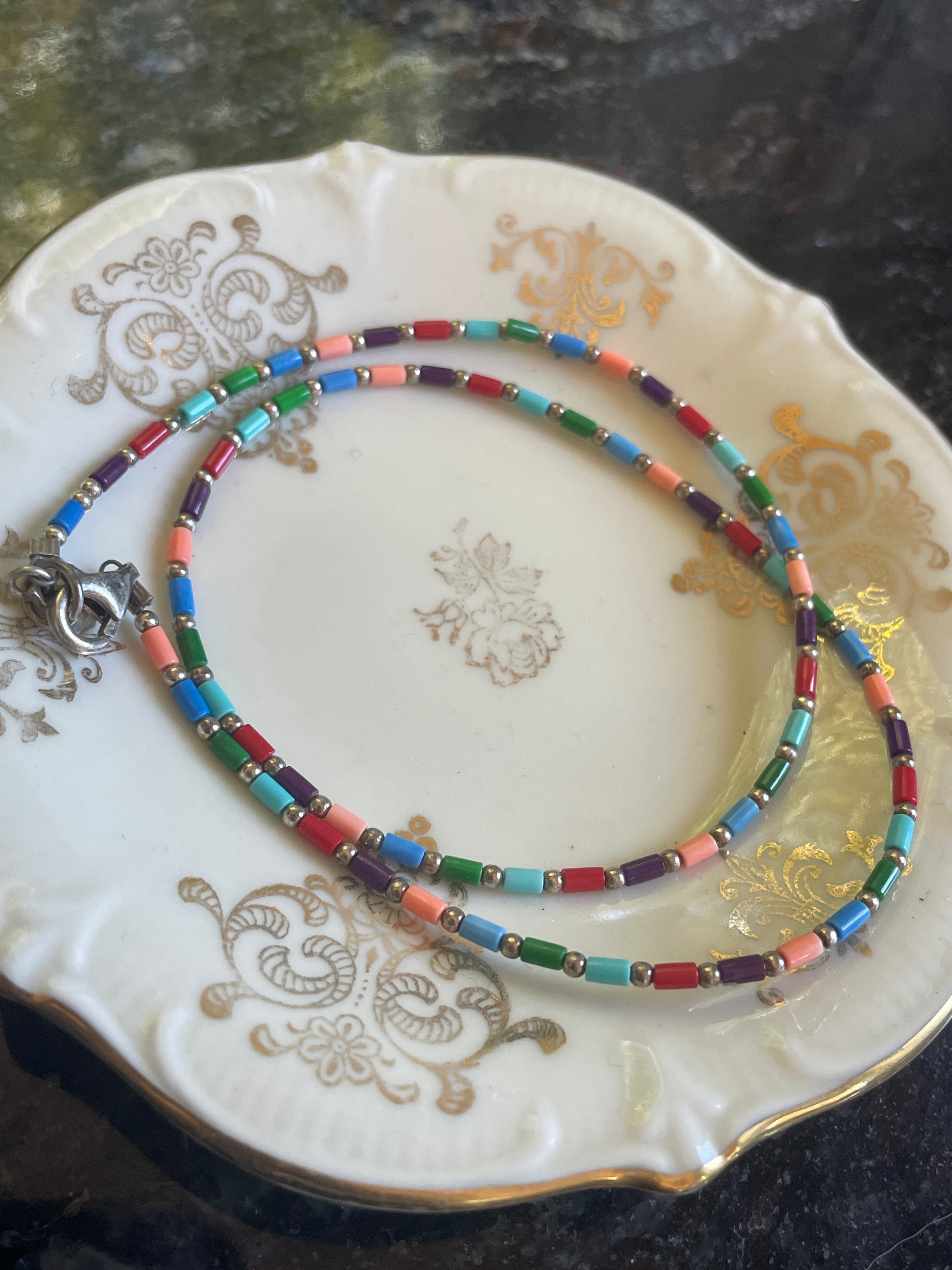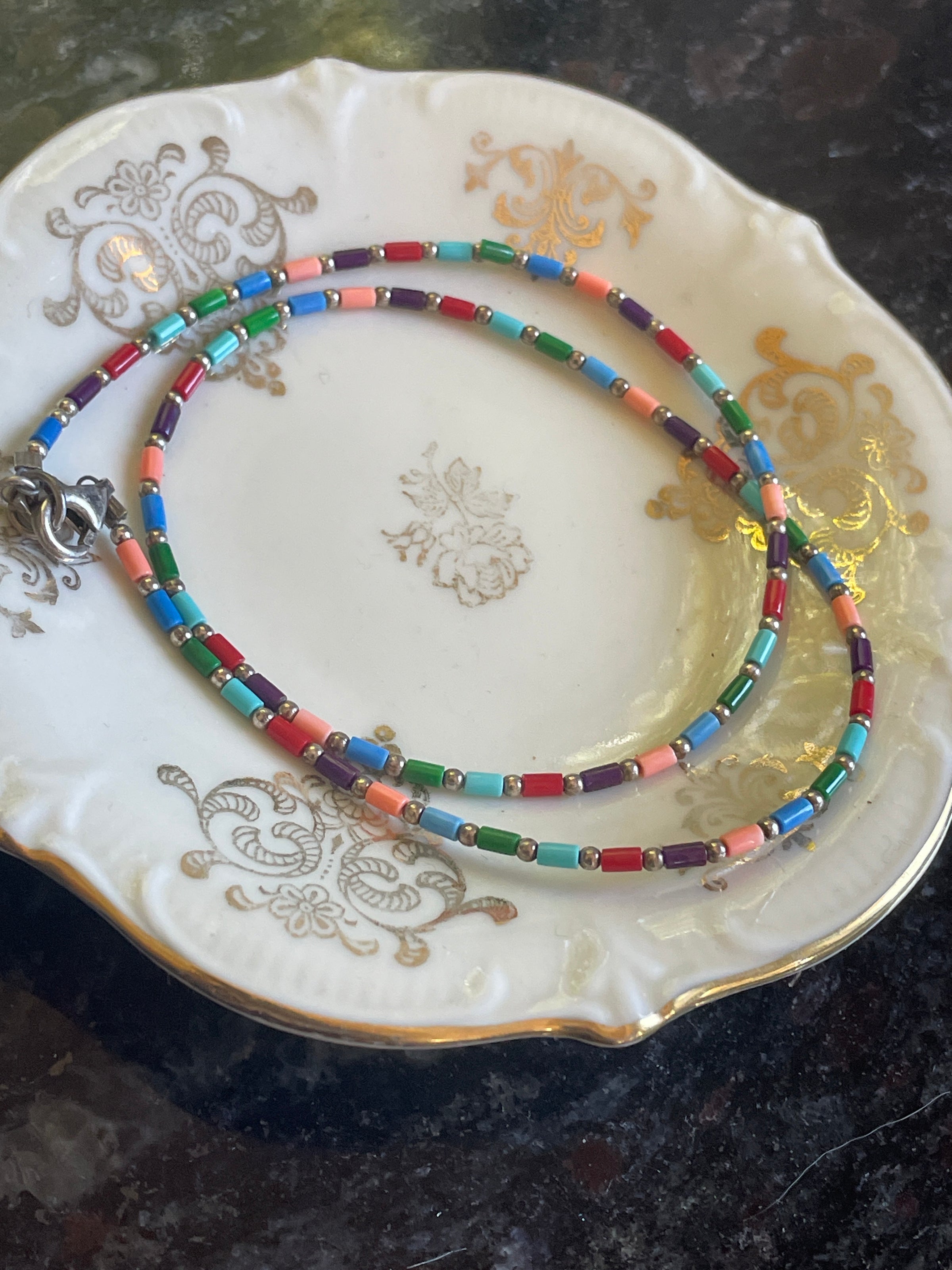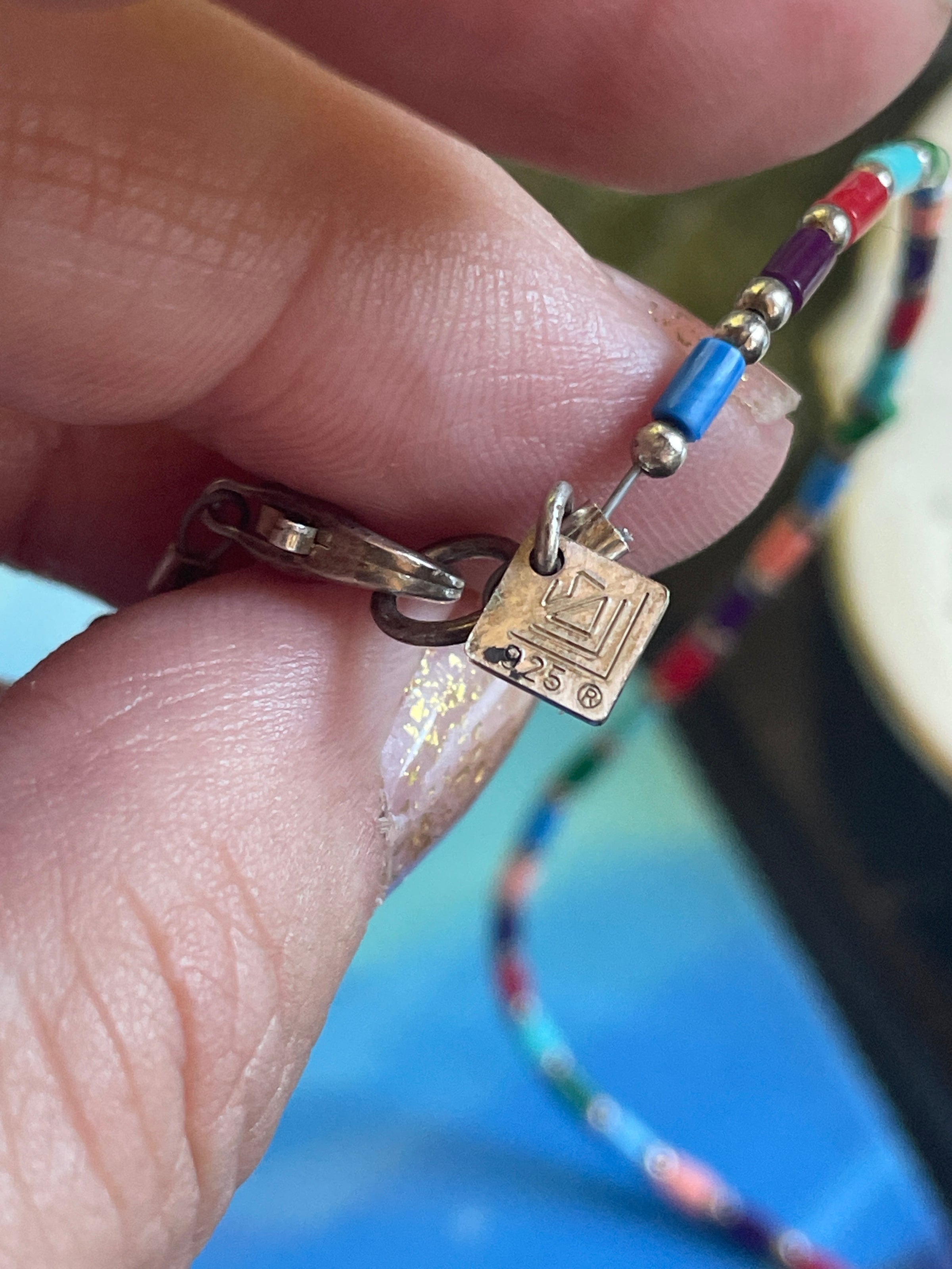 Fabulous vintage gemstone necklace in sterling silver with beautiful multigem beads. Necklace measures approximately 16 inches. Maker is “Silpada” also marked 925 for sterling. Note there is one tiny Green bead that’s broken. Price reflects.