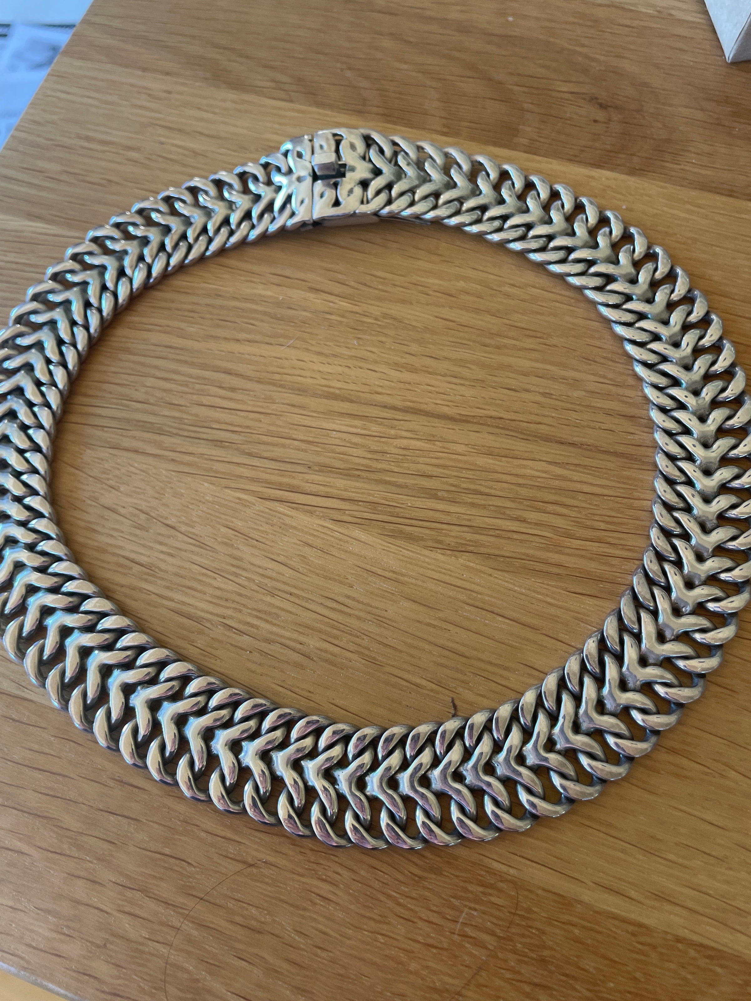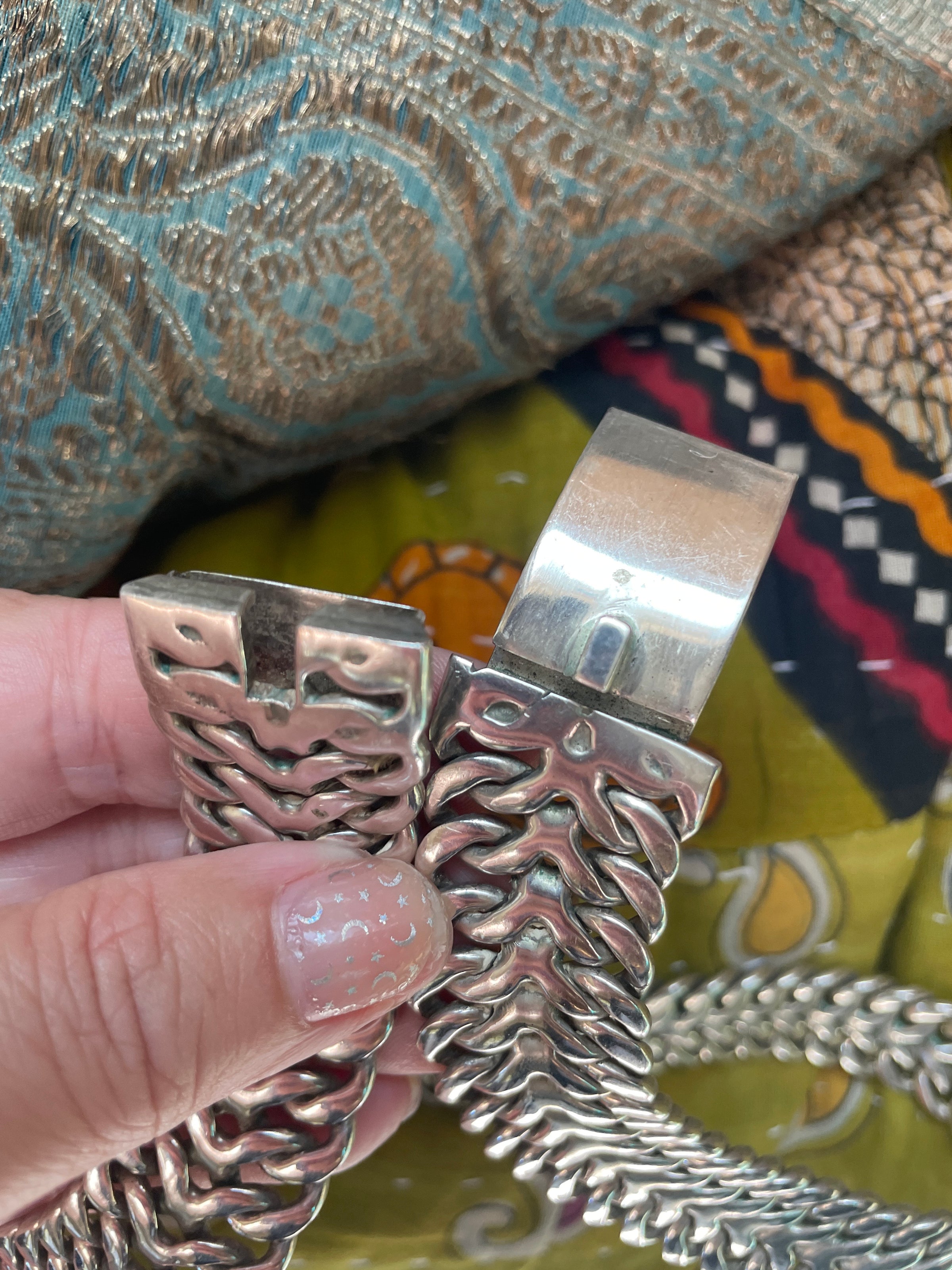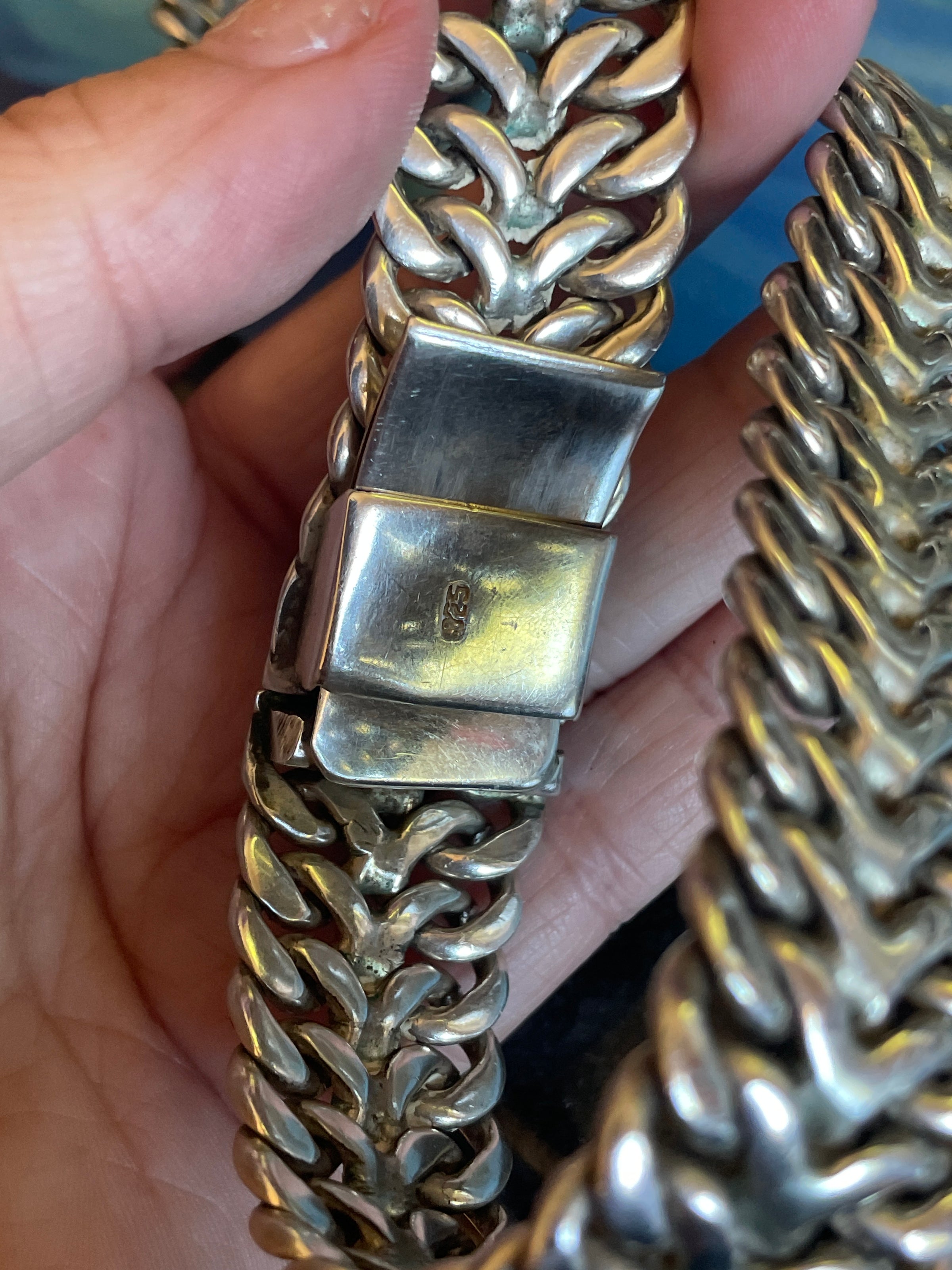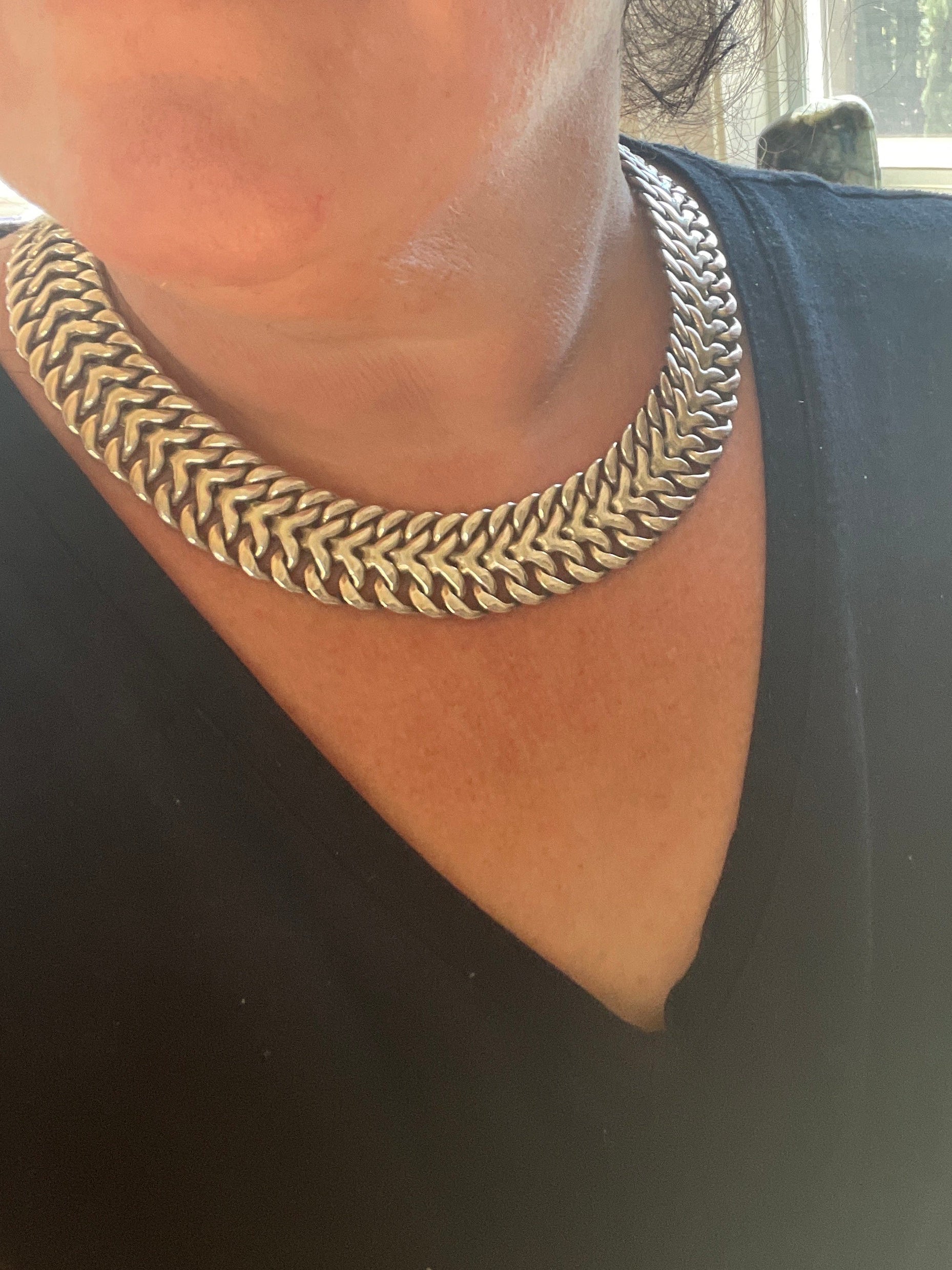 Huge heavy statement sterling collar necklace.  Weighs 188 grams.  Fully hallmarked for sterling with 925 engraved in back of clasp.  Measures approx 17 inches.  Beautiful drape.  Perfect heirloom piece.