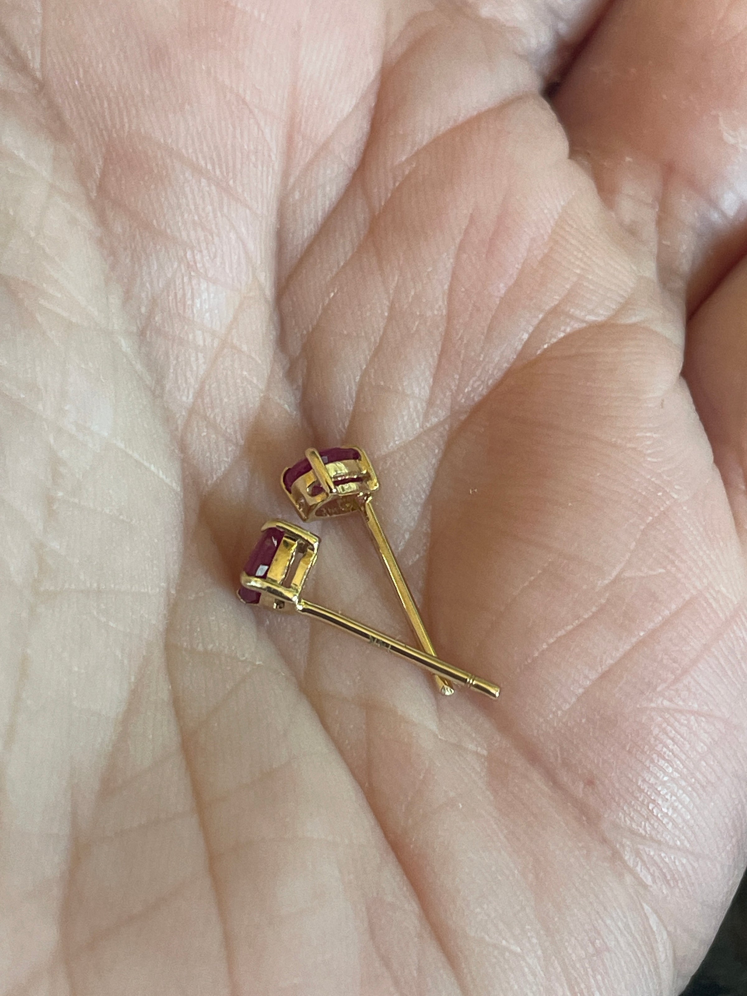 Fabulous Ruby earrings in 14k gold.  Such a gorgeous shade of Pink.  They measure approx 4mm x 3mm.  Posts stamped 14.  They come with plastic backs.