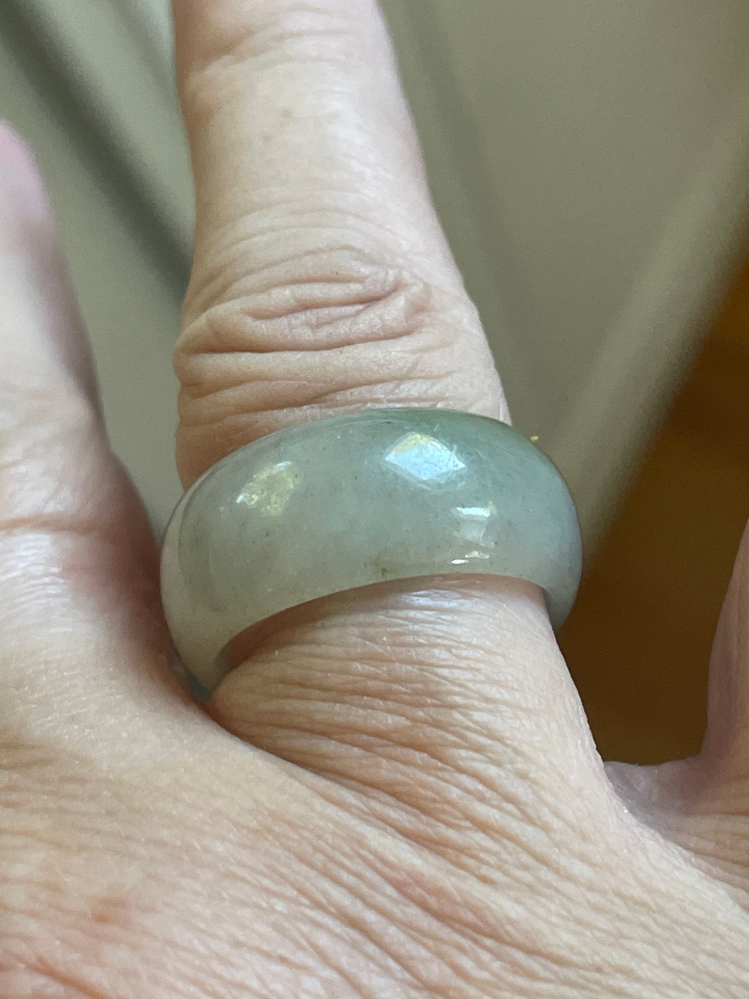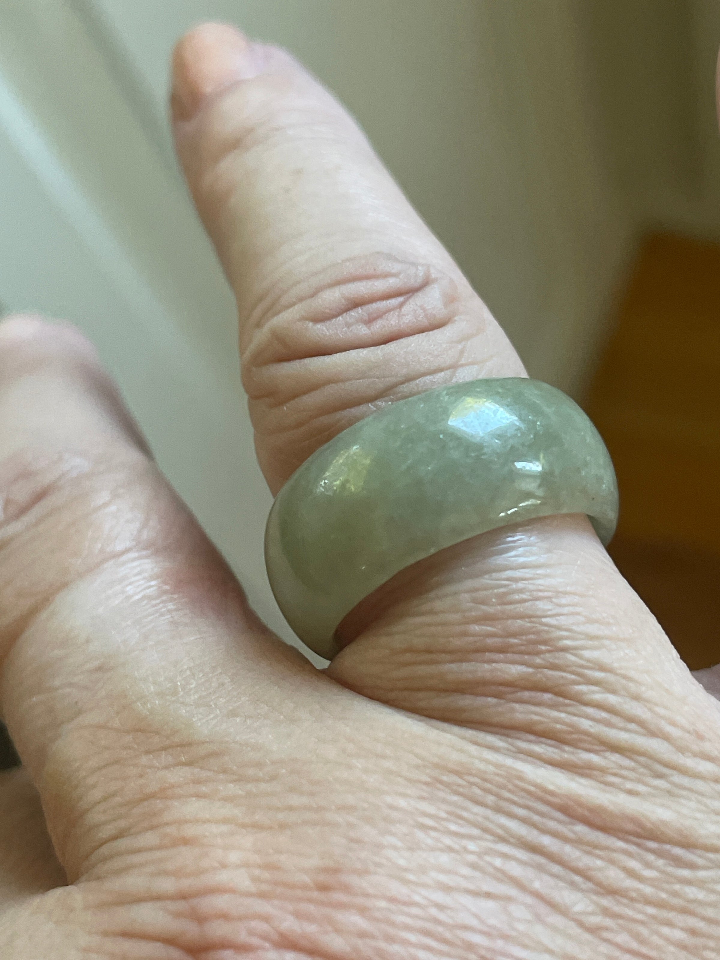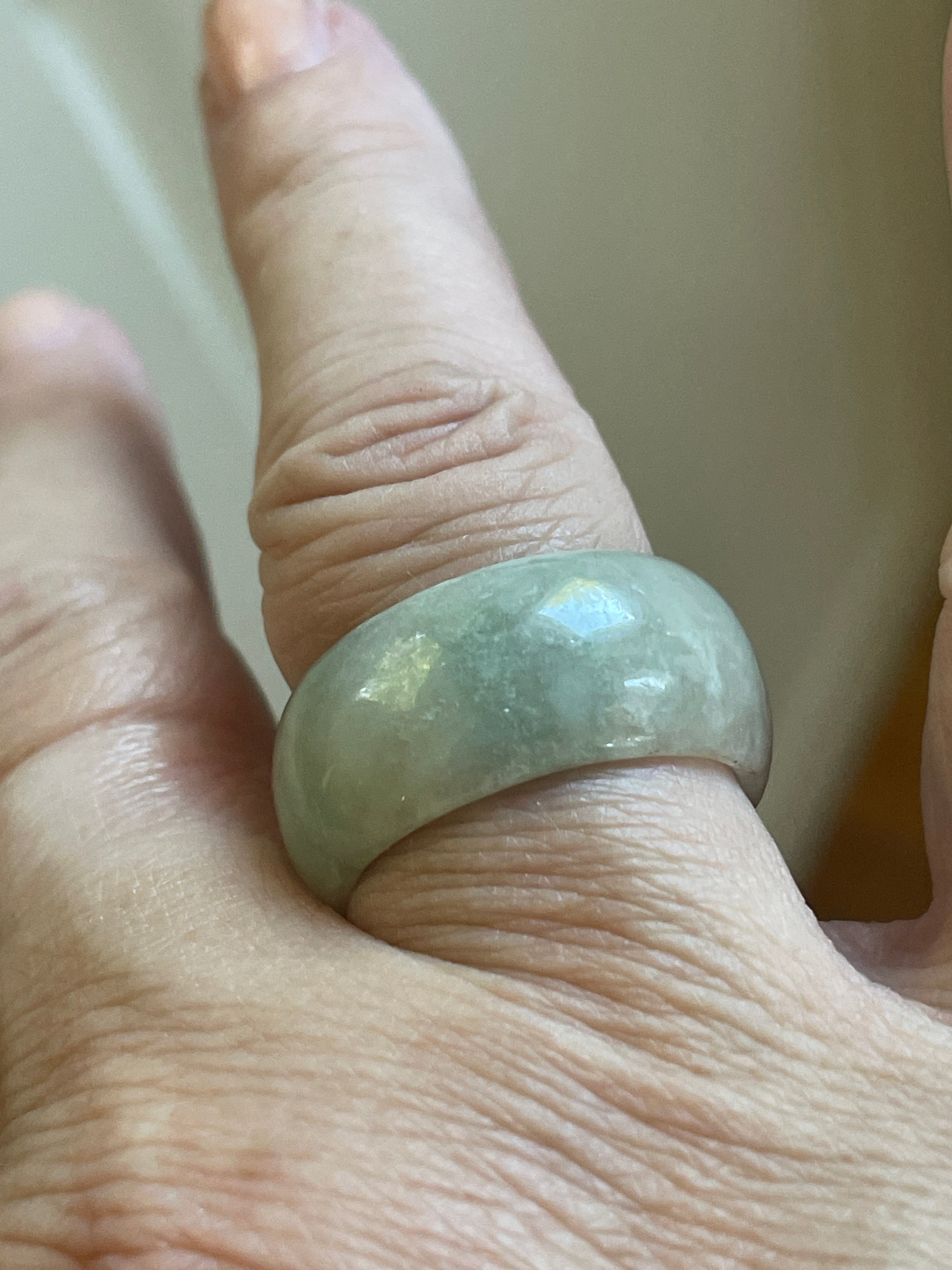 Fabulous vintage Jade rings circa 1980s. Approx 10mm thick. They fit smaller due to thickness probably approx 1 size smaller. Note price is for one and you select from choices below.