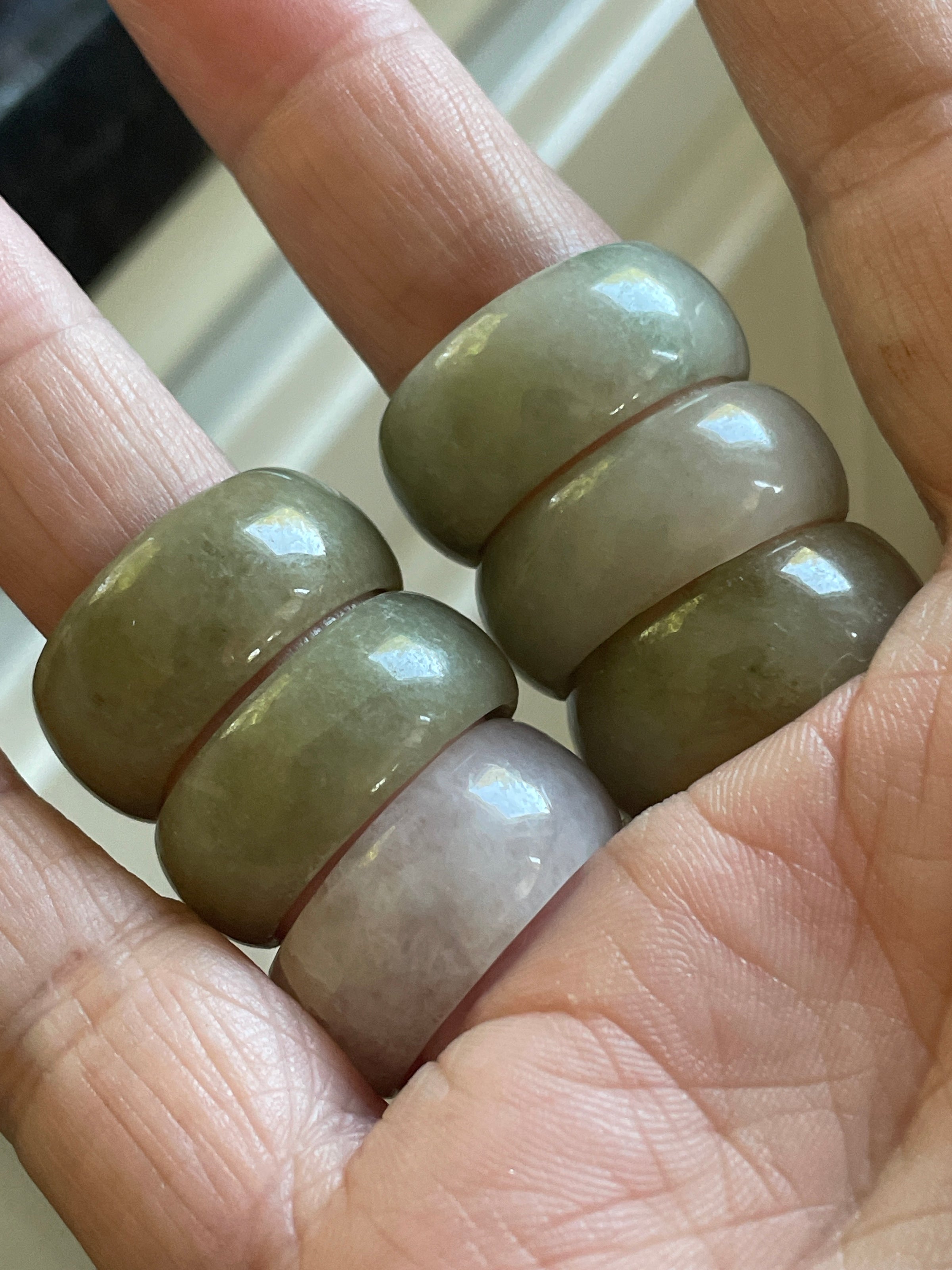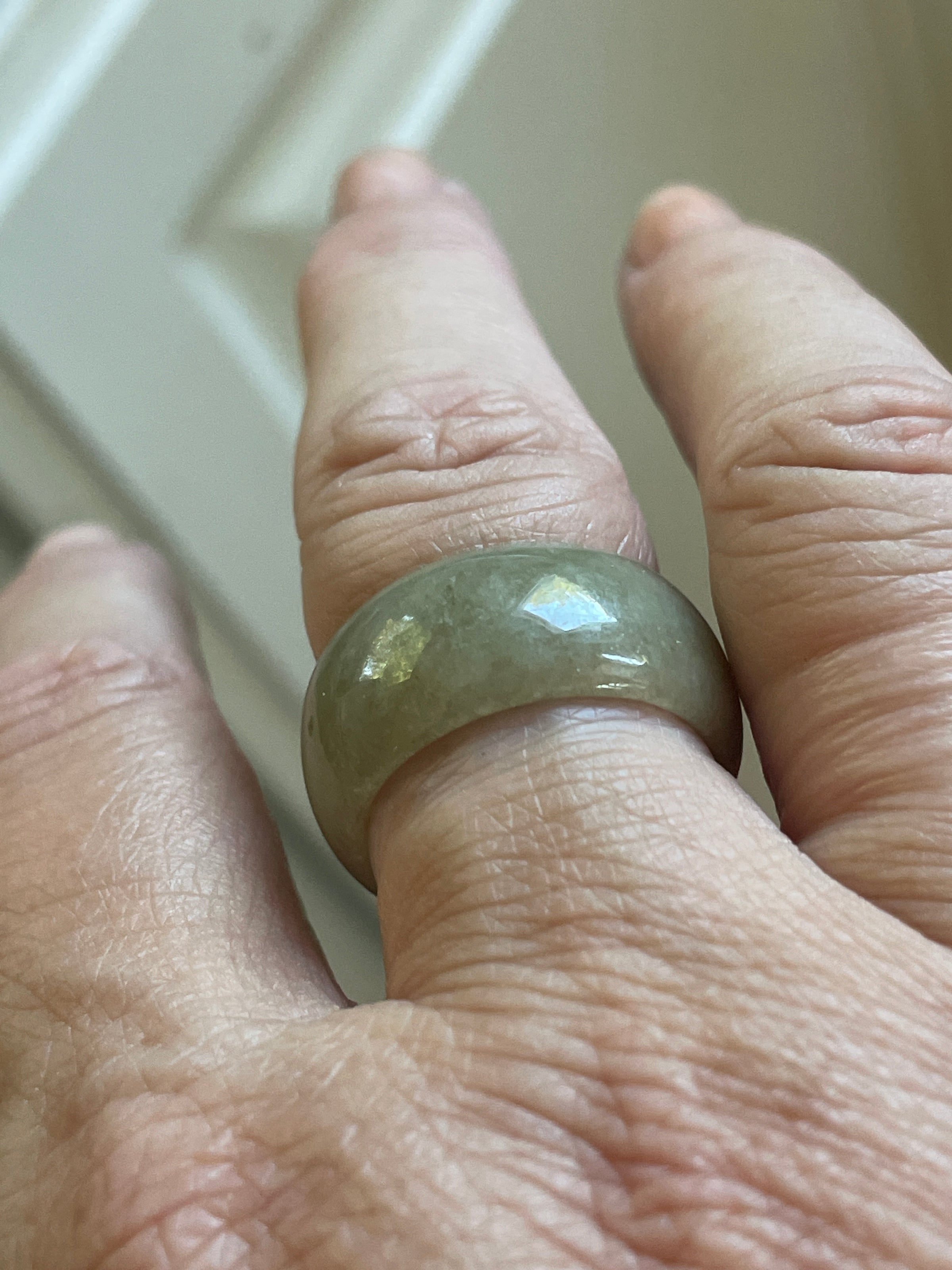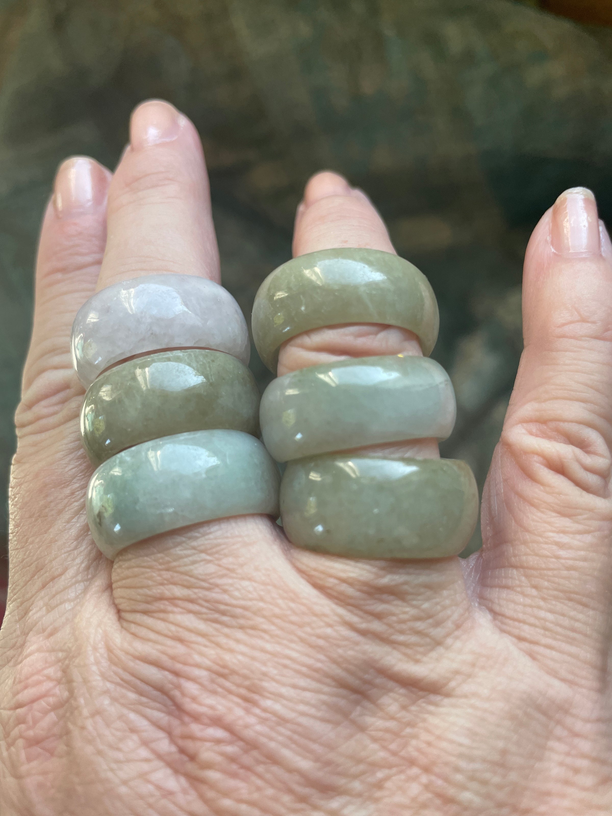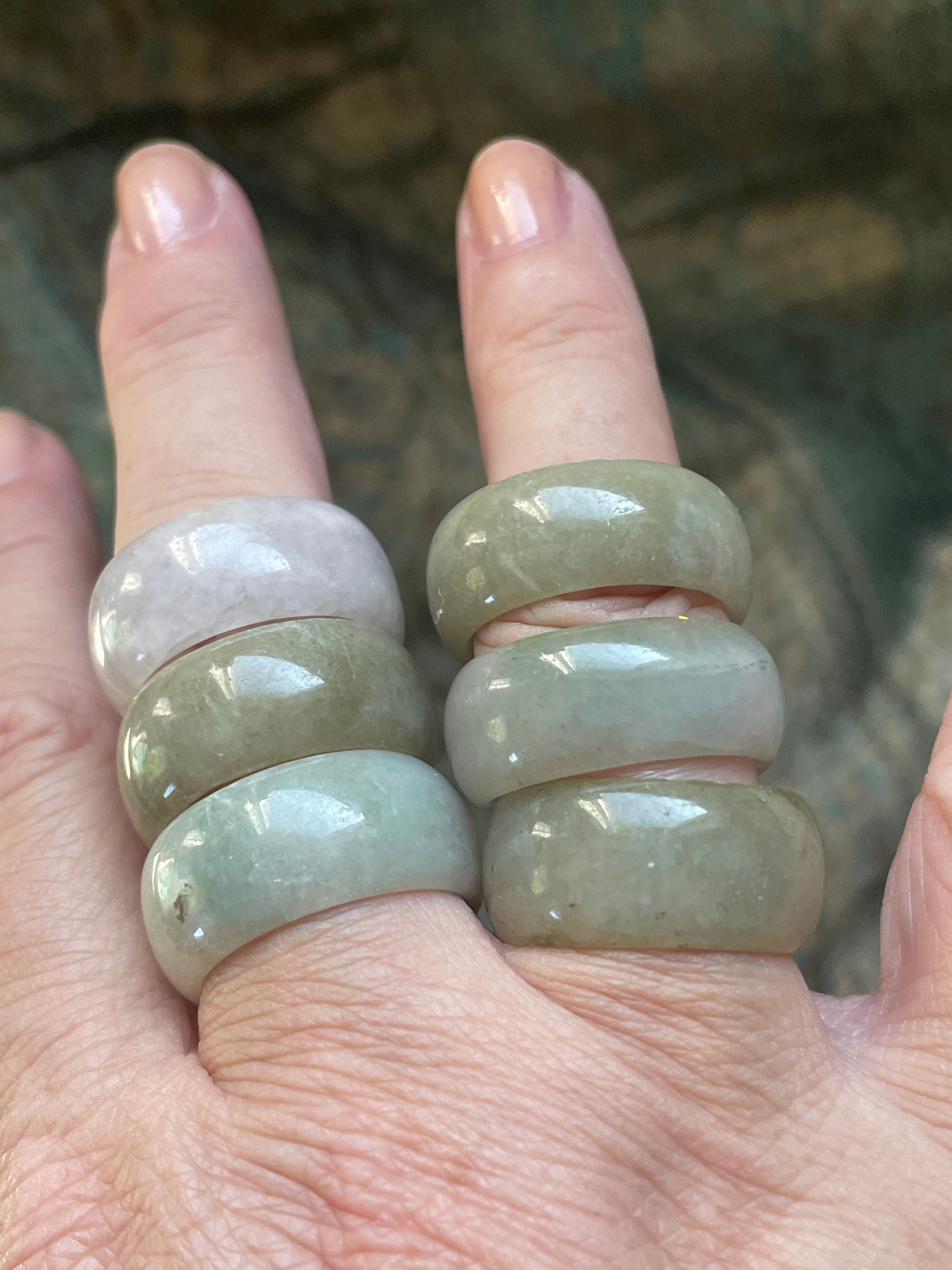 Fabulous vintage Jade rings circa 1980s. Approx 10mm thick. They fit smaller due to thickness probably approx 1 size smaller. Note price is for one and you select from choices below.