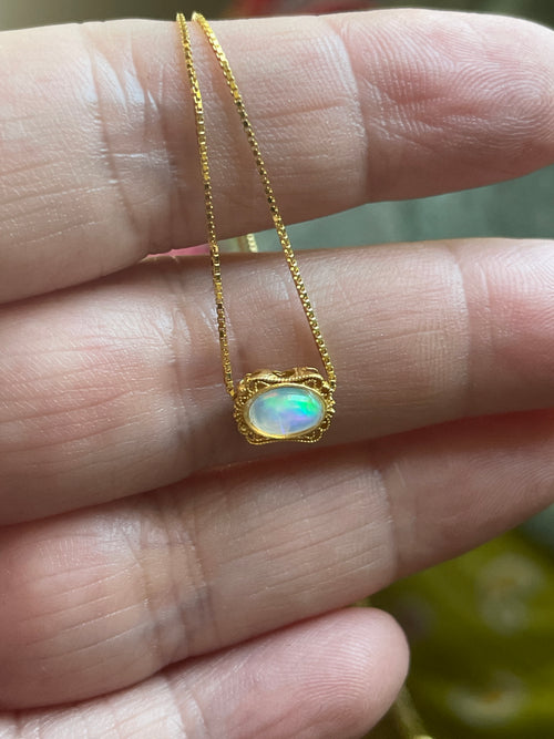 Opal Filigree Necklace - Gold over Sterling Silver - Modern