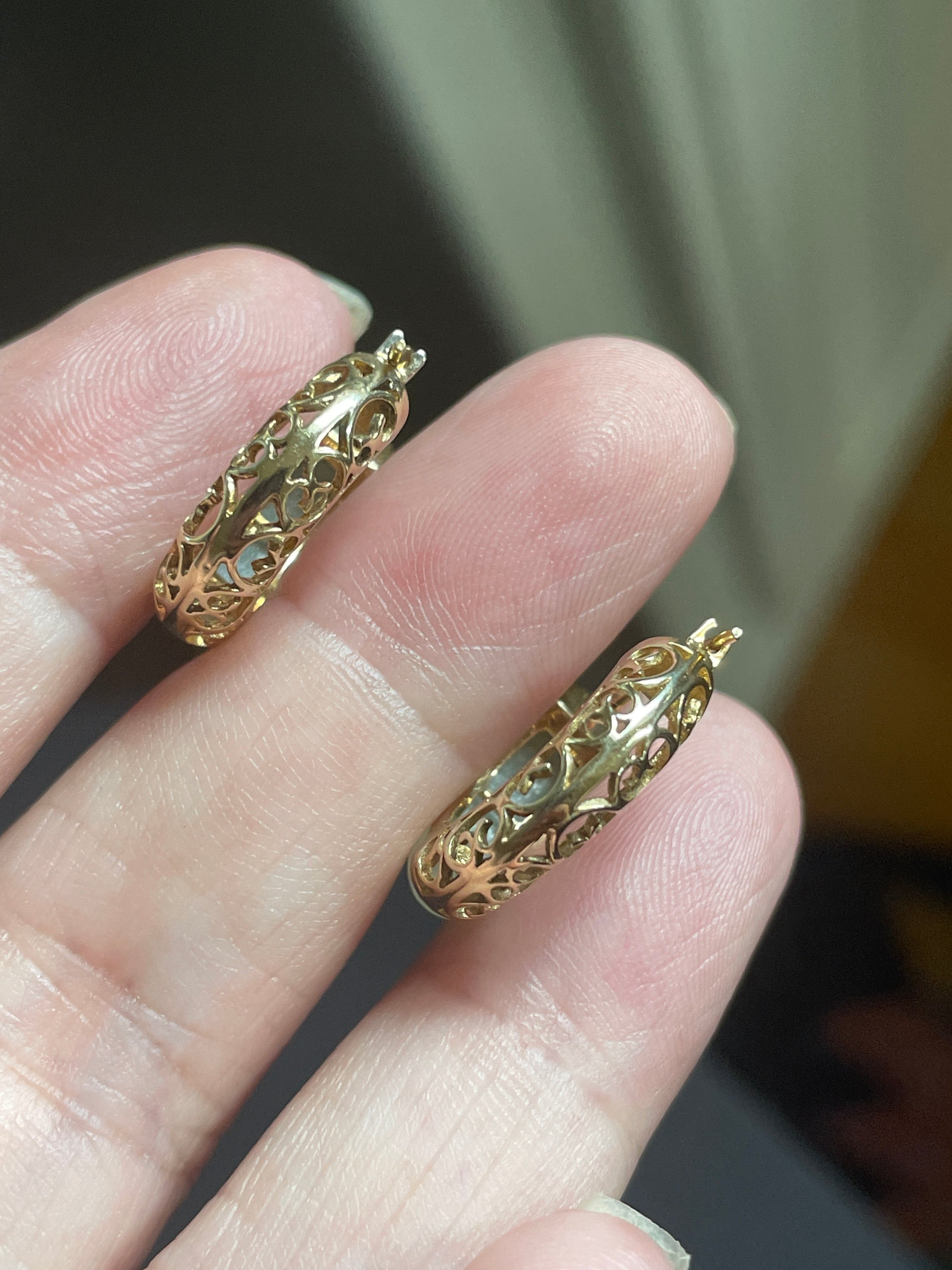 Vintage hoop earrings and antique hoop earrings effortlessly elevate any outfit. Whether you choose a simple delicate gold hoop or a statement ornate silver hoop earring you are making an investment in jewelry that will be a staple in your wardrobe. Our collection includes hoop earrings in 9k, 10k, 14k, 18k, 22k gold as well as sterling silver.