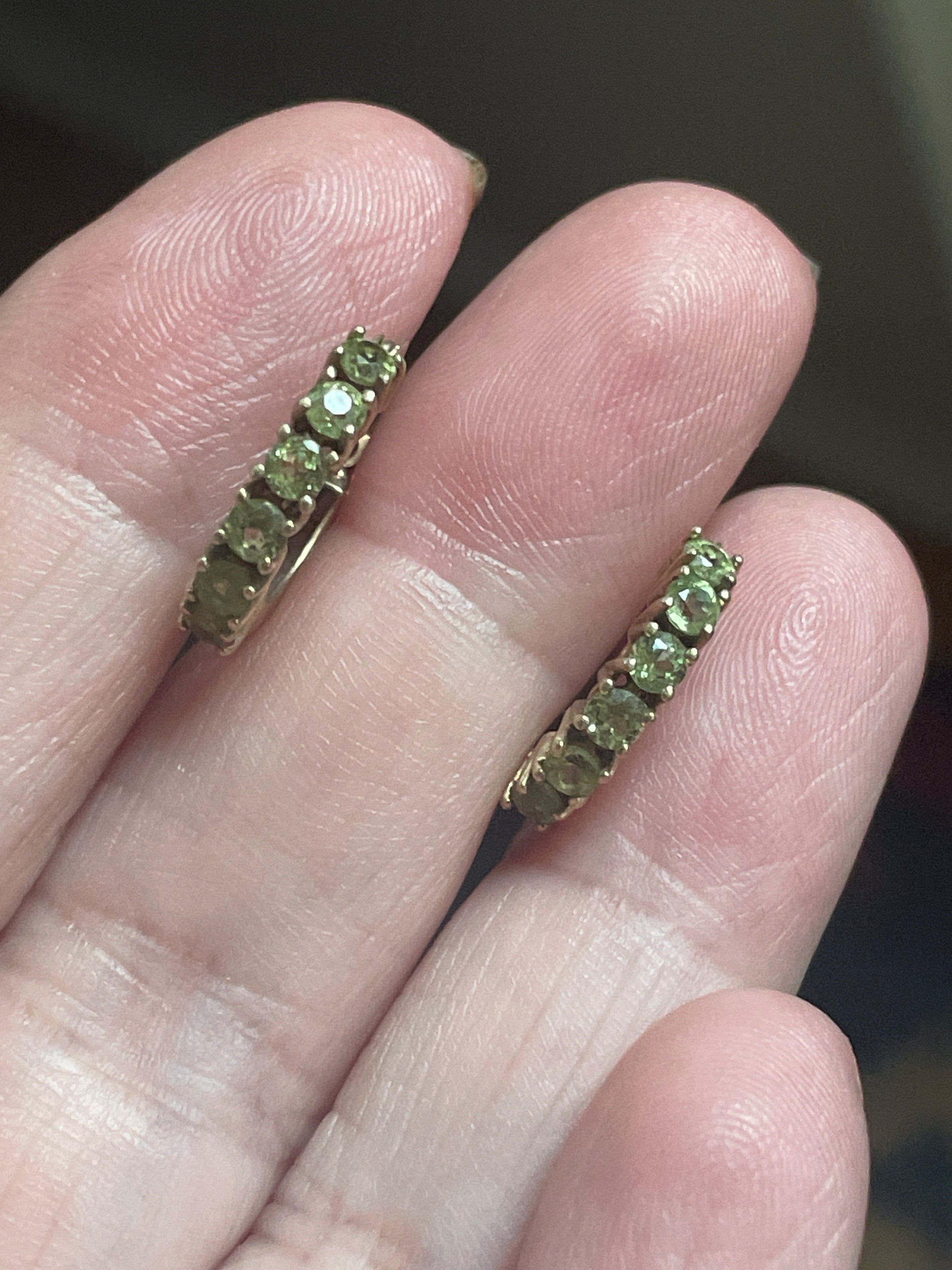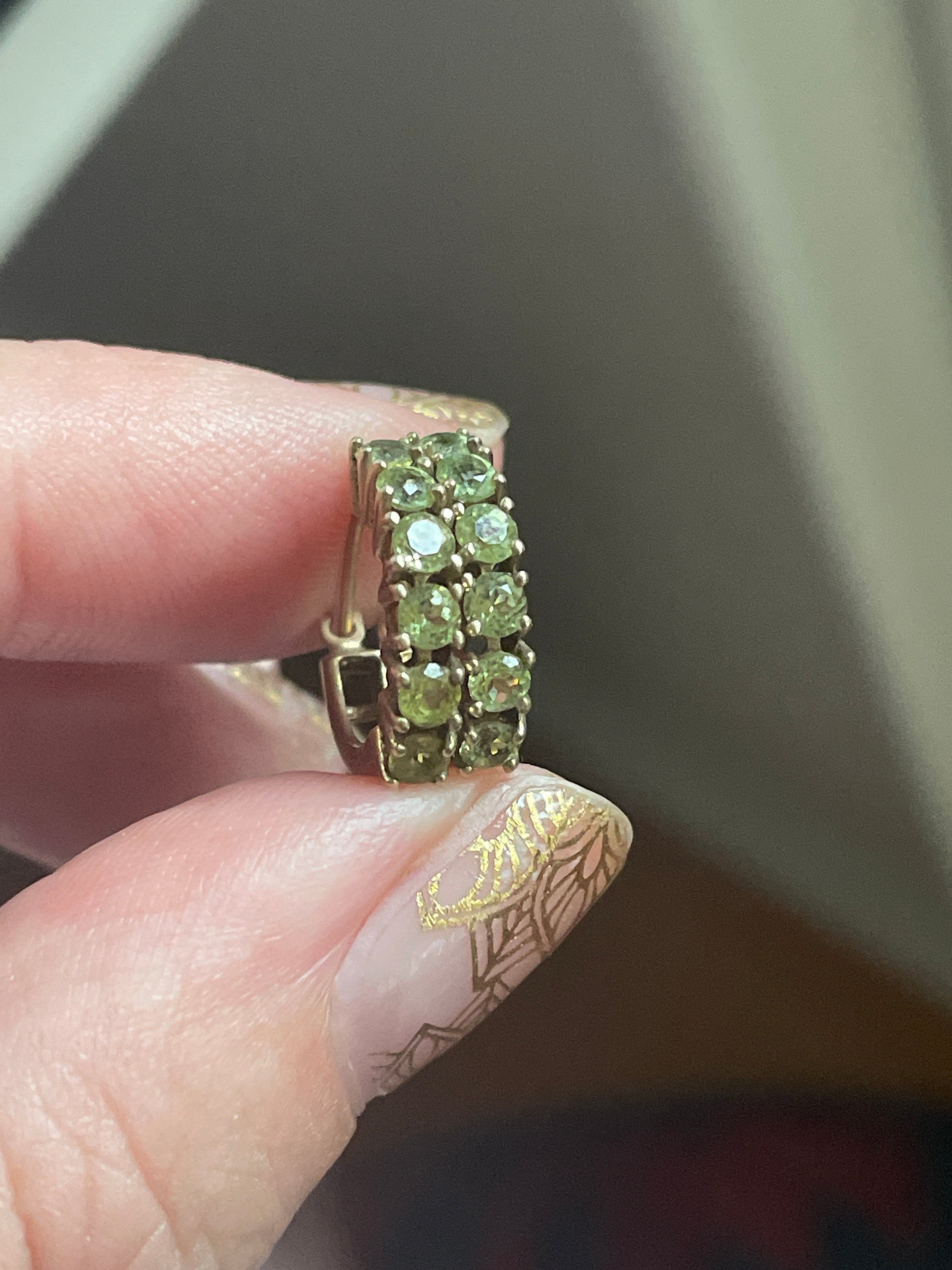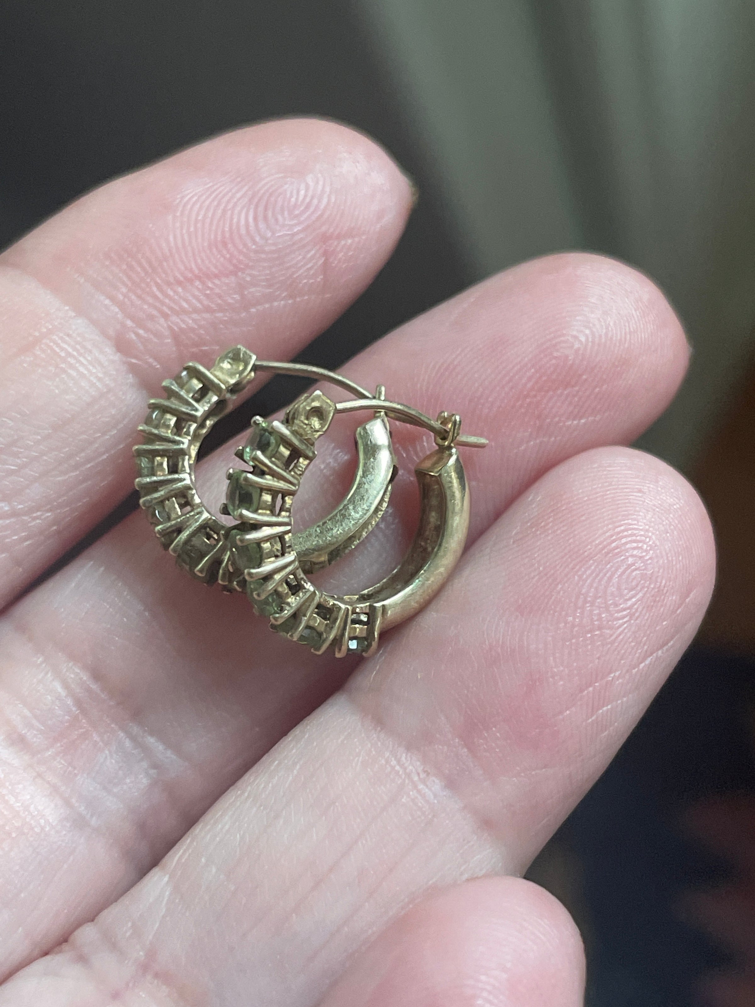 Stunning vintage Peridot hoop earrings in 10k gold. These measure approx 0.5 inches. Stamped 10k on earwires.