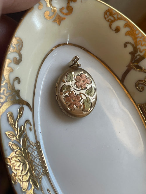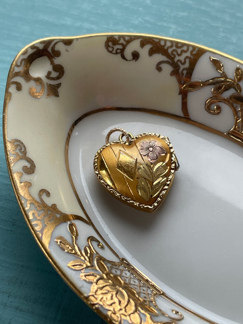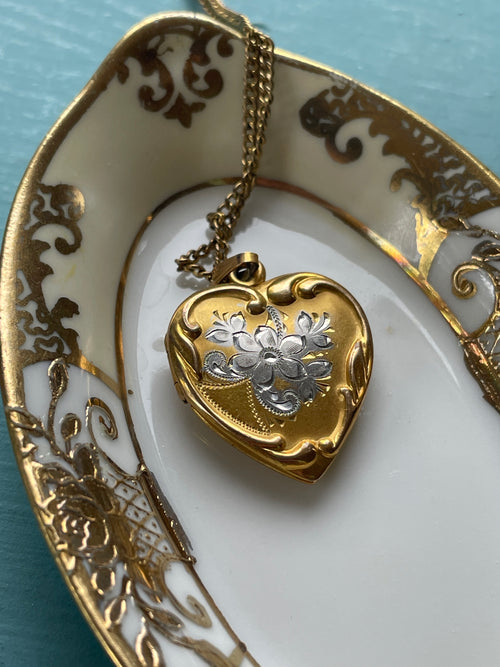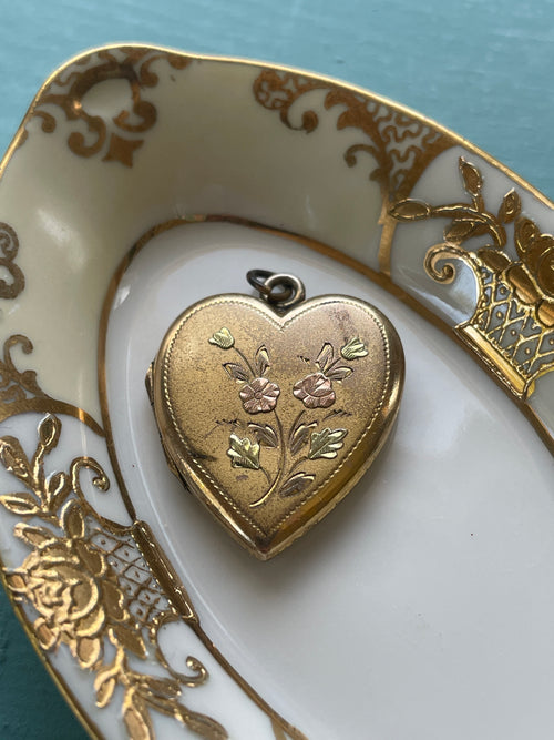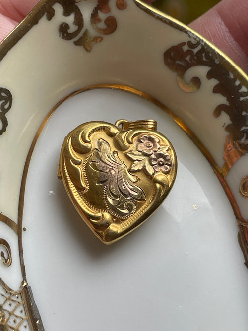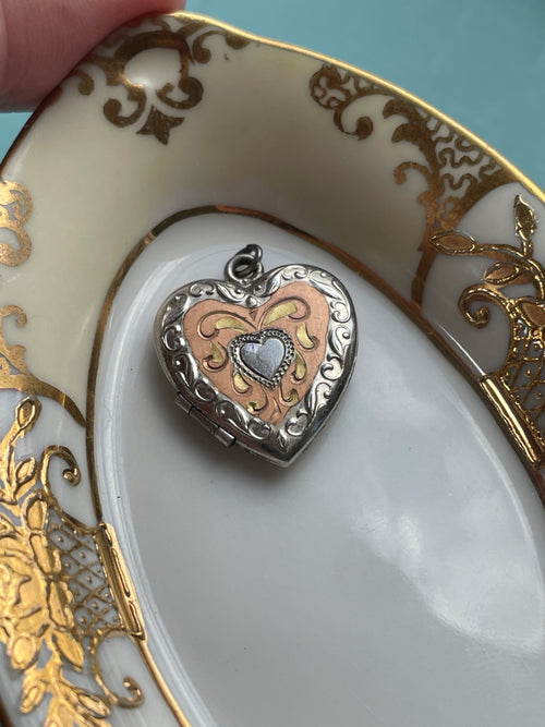 Rose Gold, White Gold and Yellow Gold Heart Locket - Gold Filled - Antique