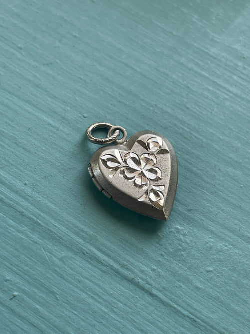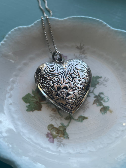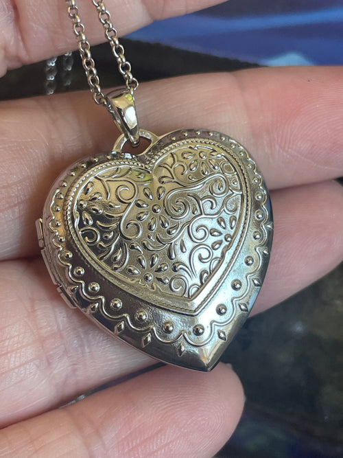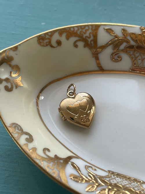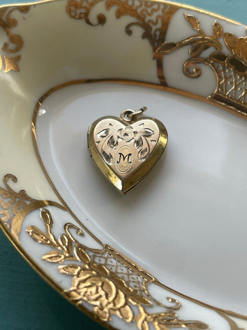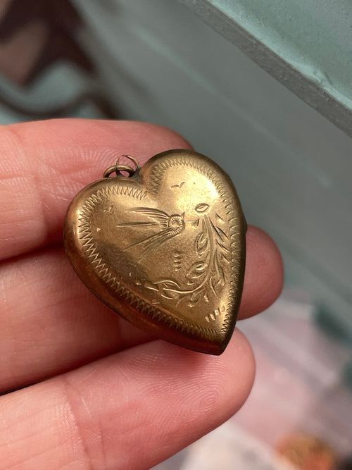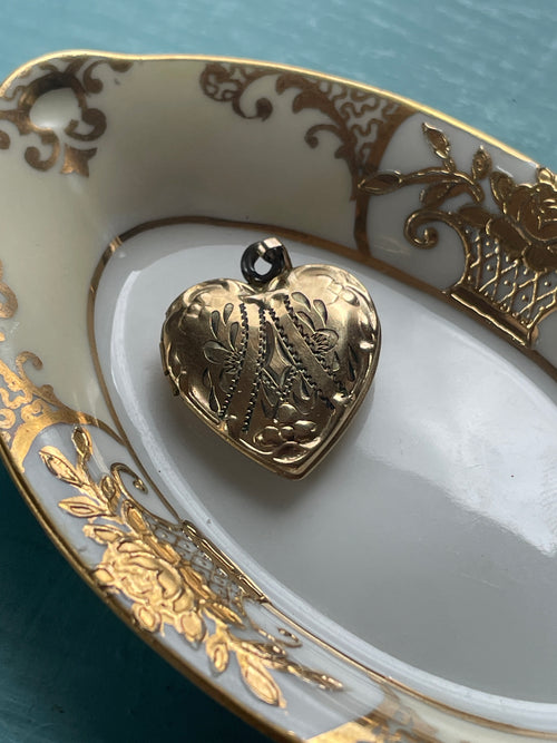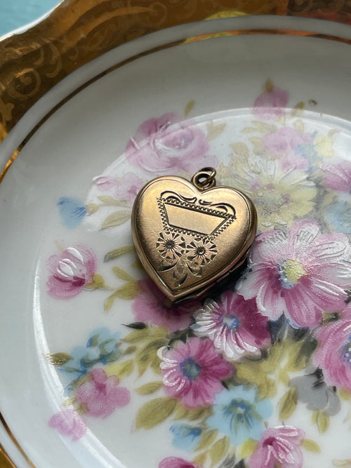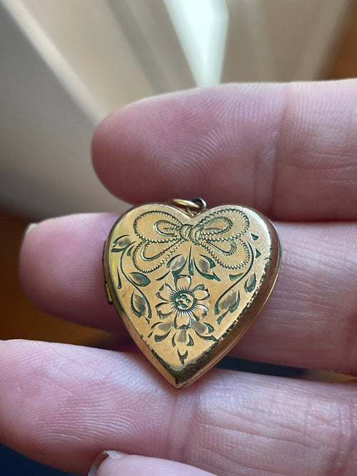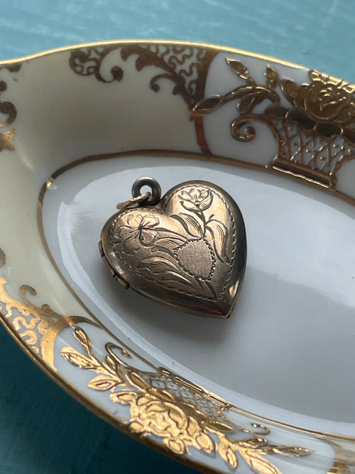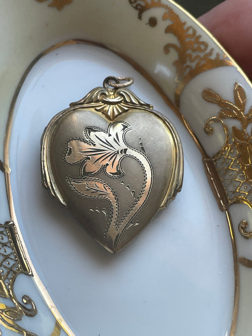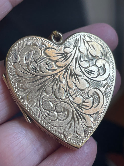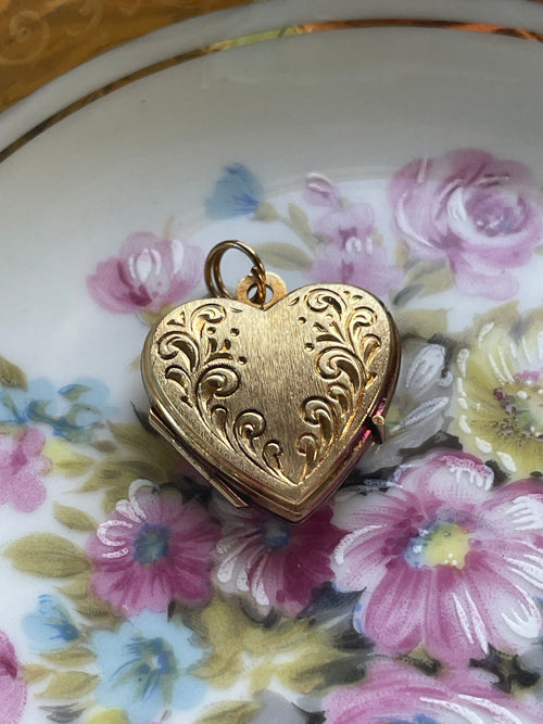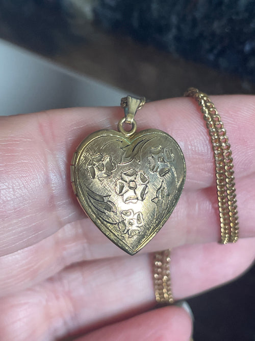 Large Heart Locket - Floral Design - Gold Filled - As Found