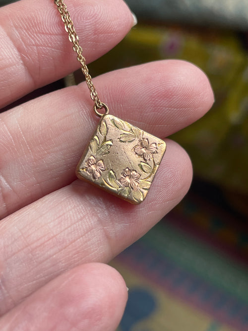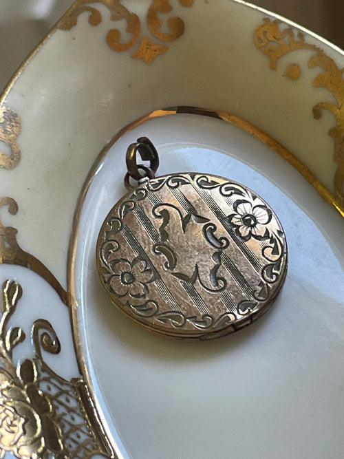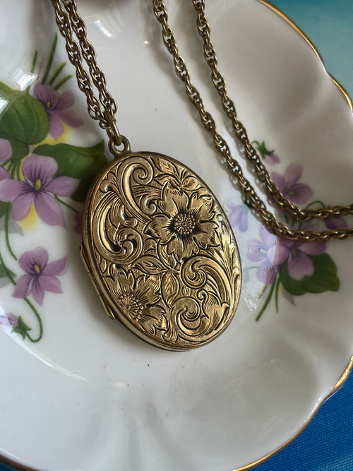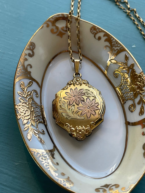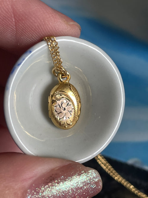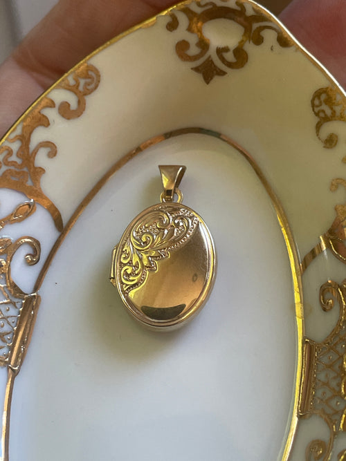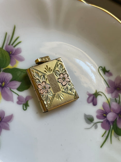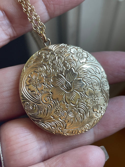 Engraved Flower Dainty Locket - Gold Filled - Vintage