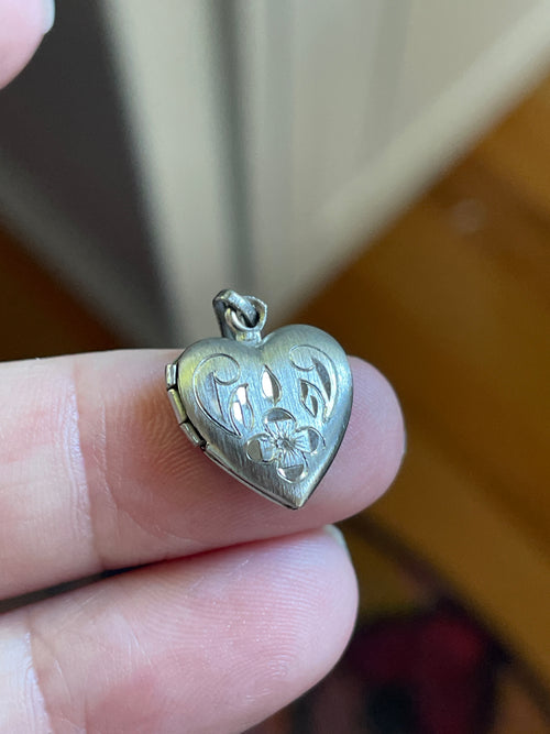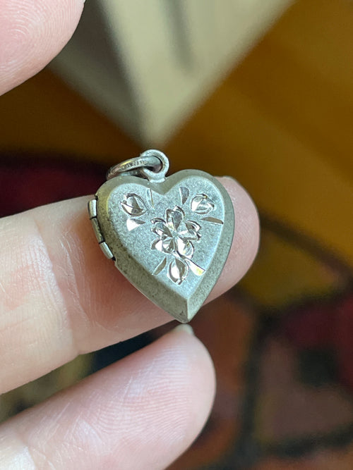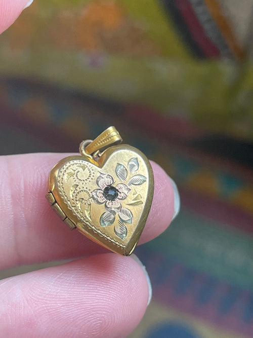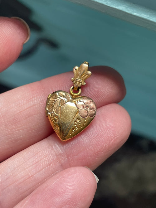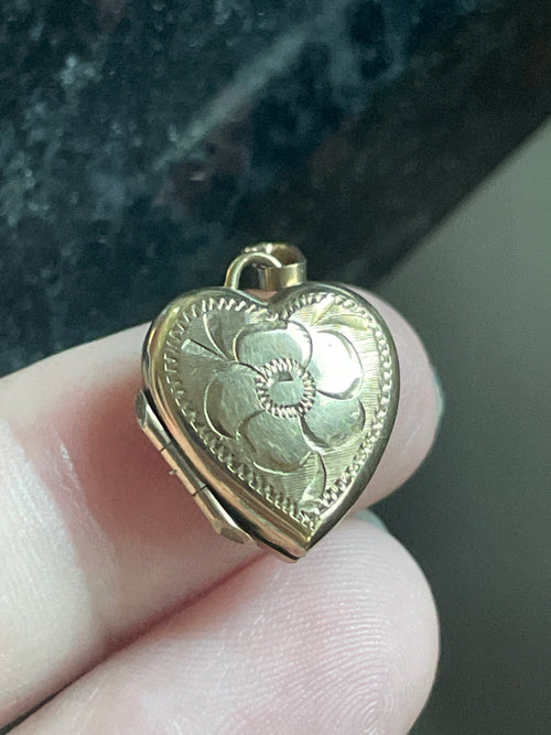 Tiny Round Heart Flower Locket - Gold Filled - Vintage