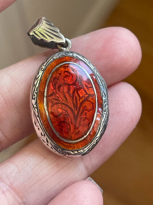 Coral Flower Locket - Raised Leaf Design - 835 Silver - Vintage