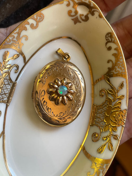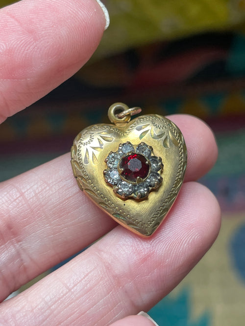 Heart Paste Locket - Yellow Gold Filled - Antique