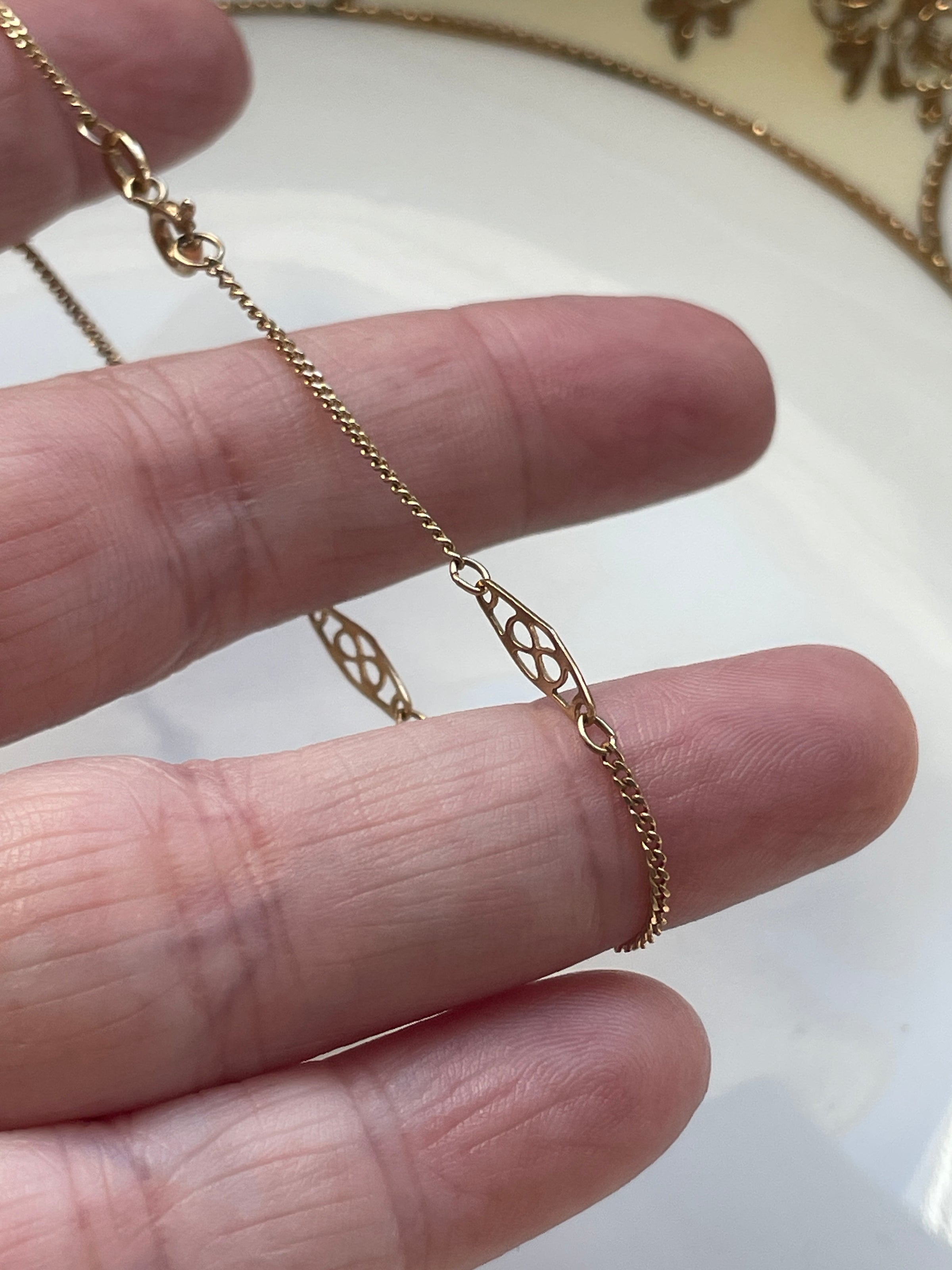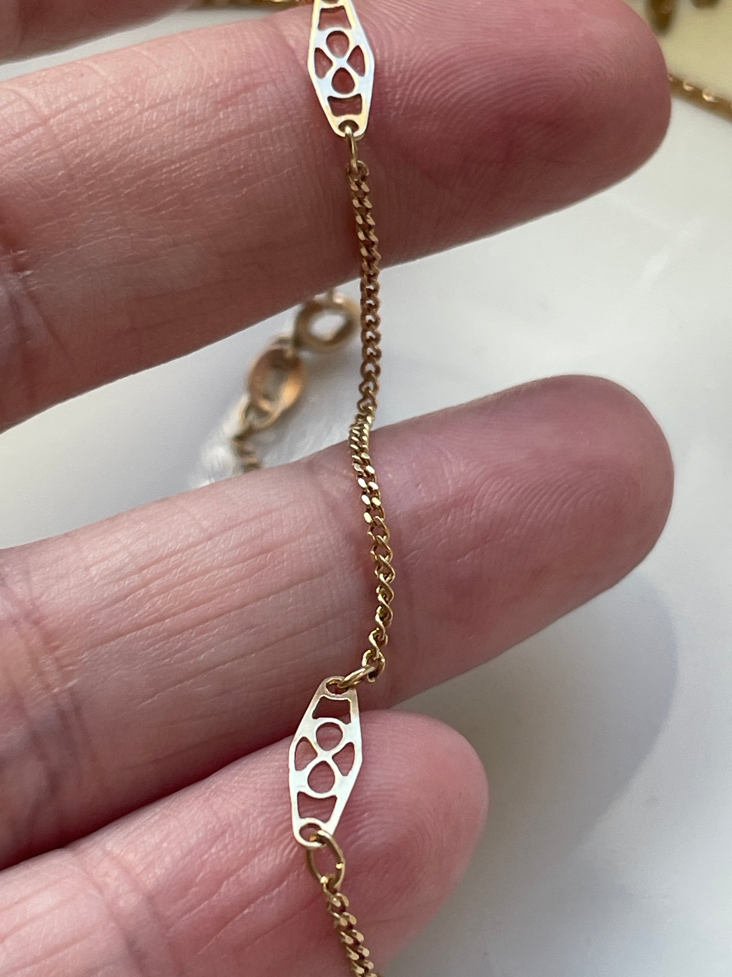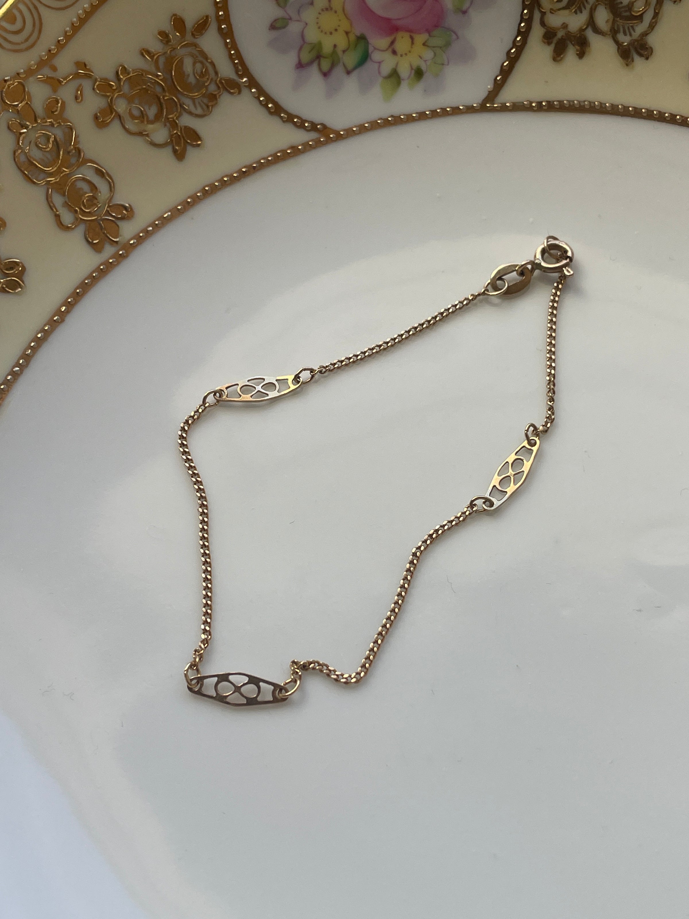 Beautiful ornate vintage station link 14k gold bracelet. Measures approx 7 inches. Stamped 14k near clasp. Weight is 1.12 grams.