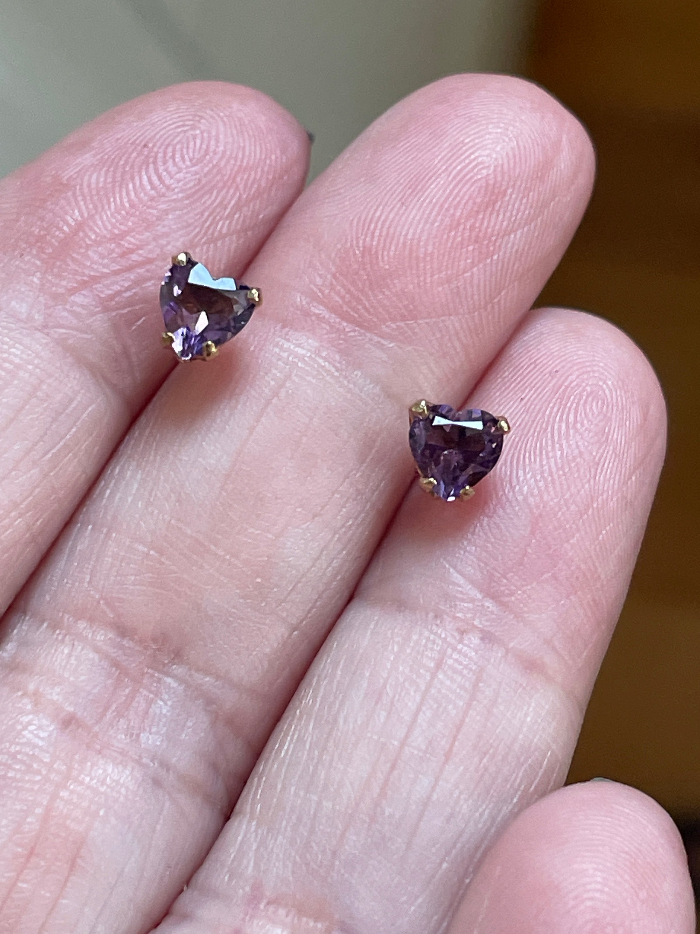 Amethyst Heart Stud Earrings - 14k Gold - Vintage