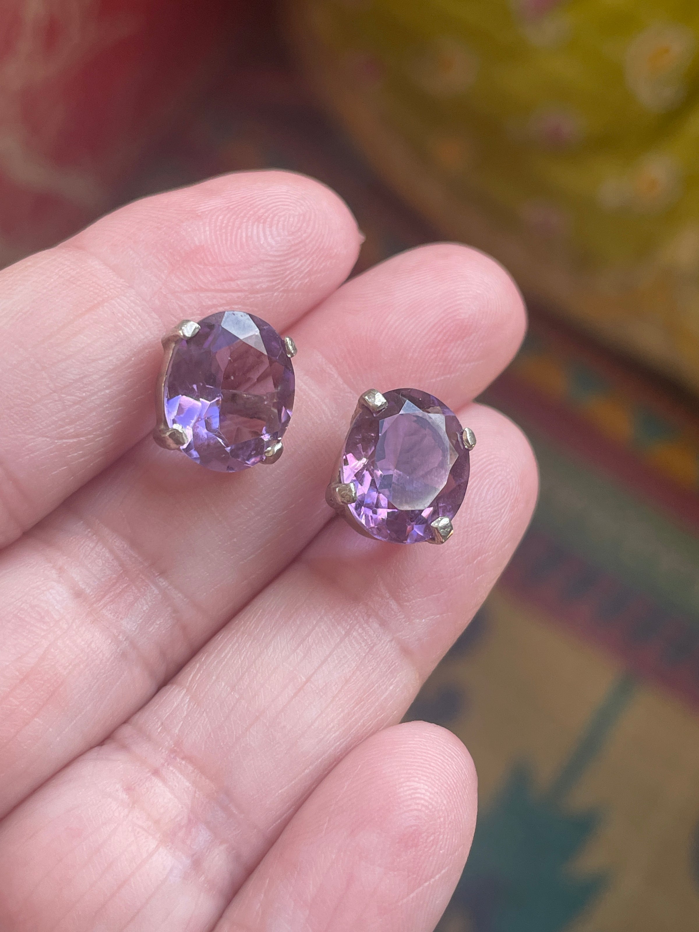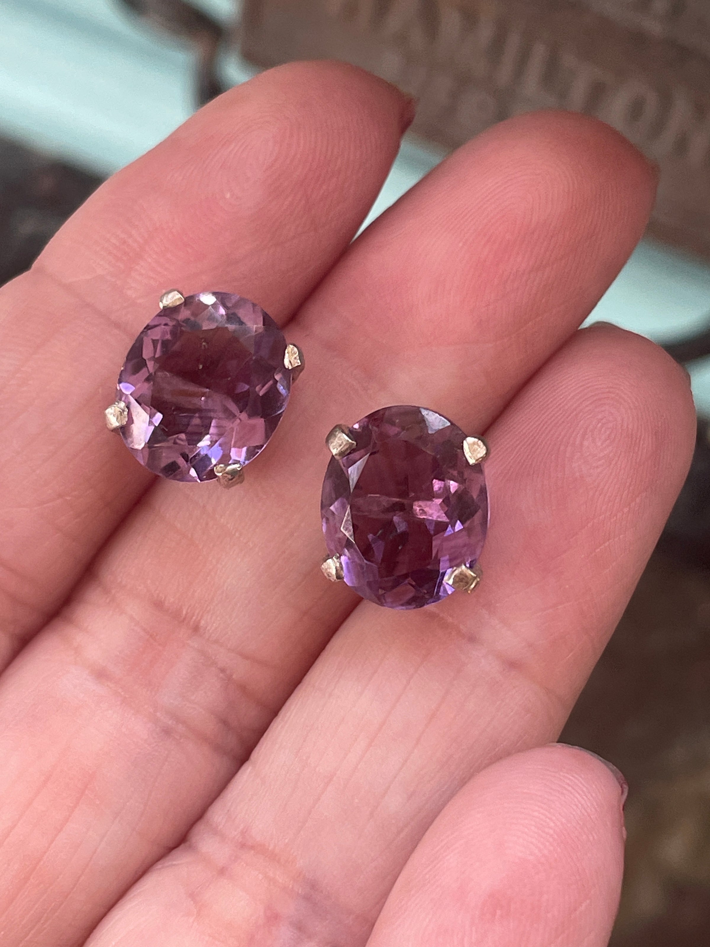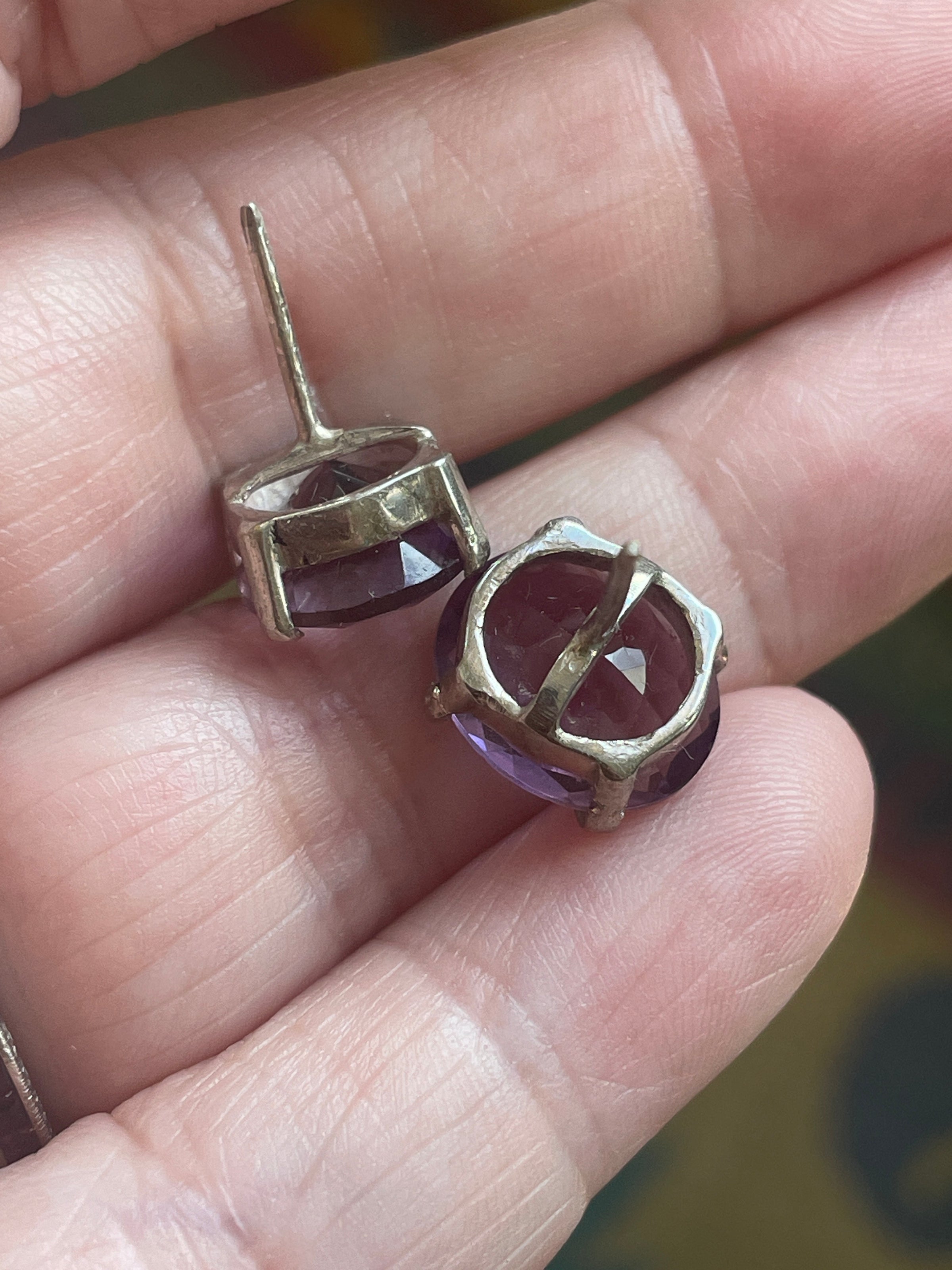 Huge gorgeous vintage Amethyst stud earrings in sterling silver. These measure approx 11mm x 9mm. Gorgeous shade of purple. Tested sterling. Backs are stamped.