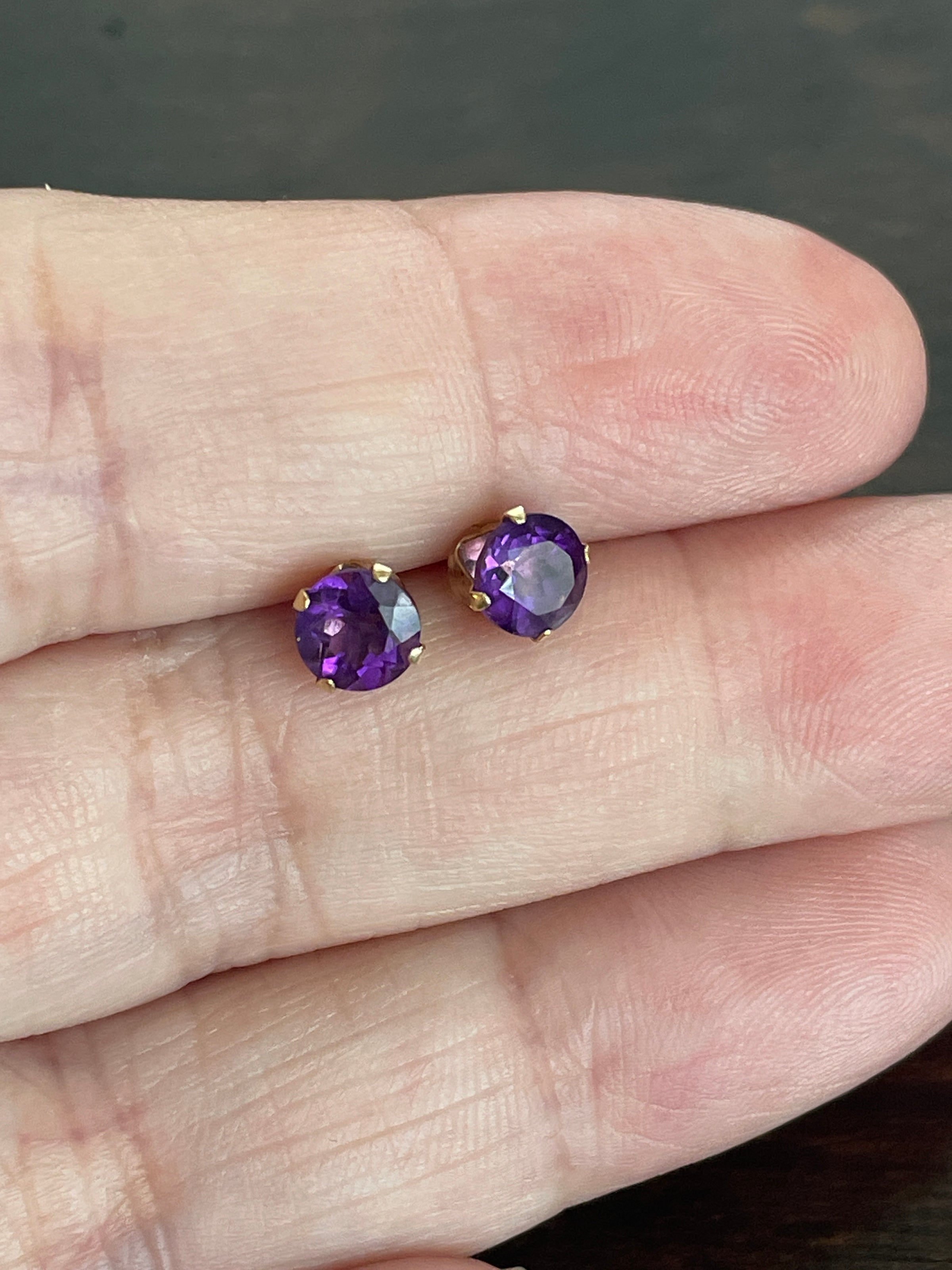 Fabulous vintage Amethyst stud earrings in 14k gold.  Amethysts measure approx 4.5mm.  Posts stamped 14k.  They come with plastic backs.