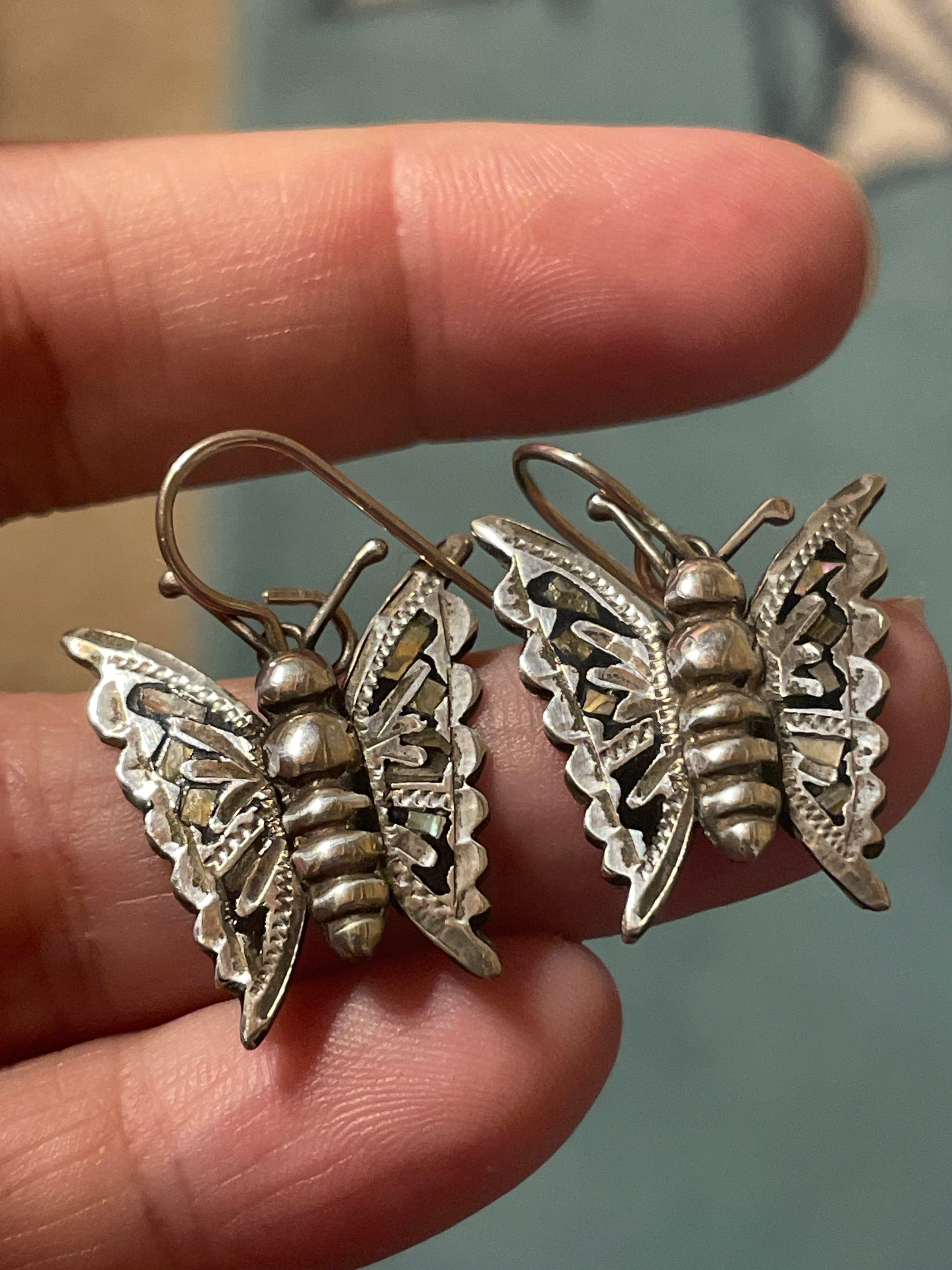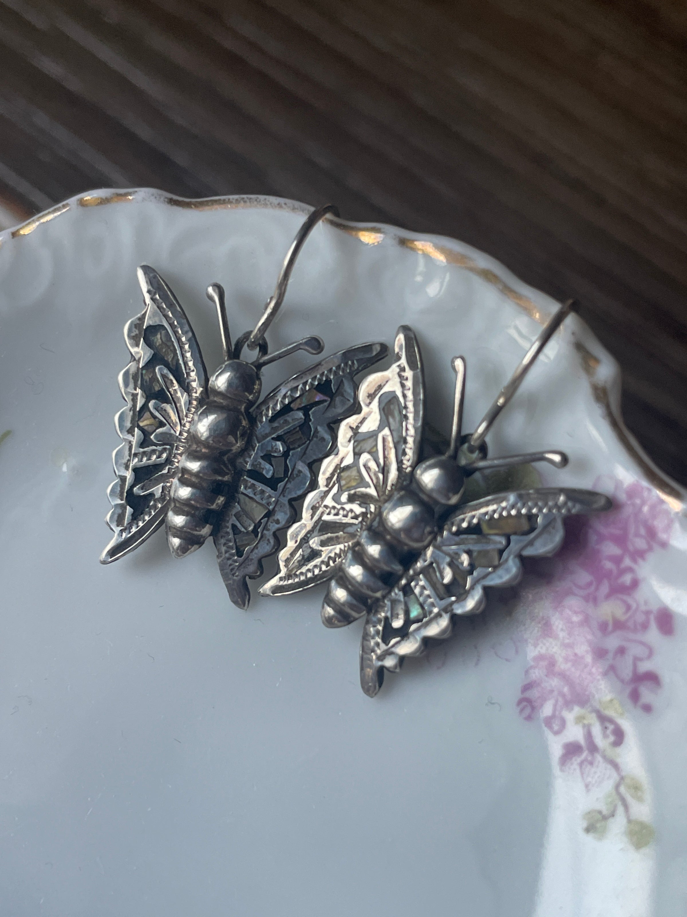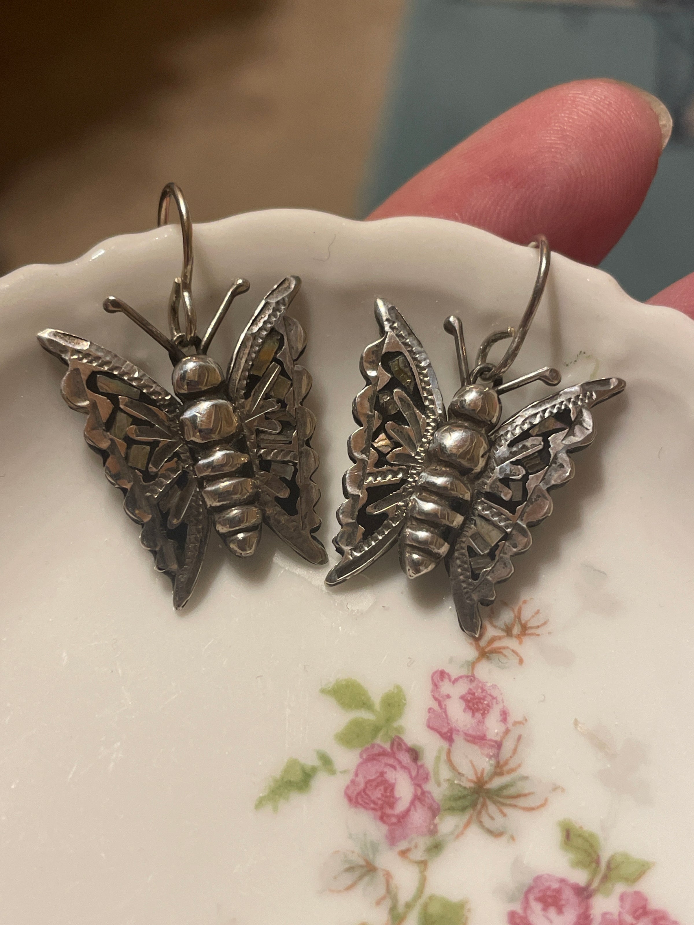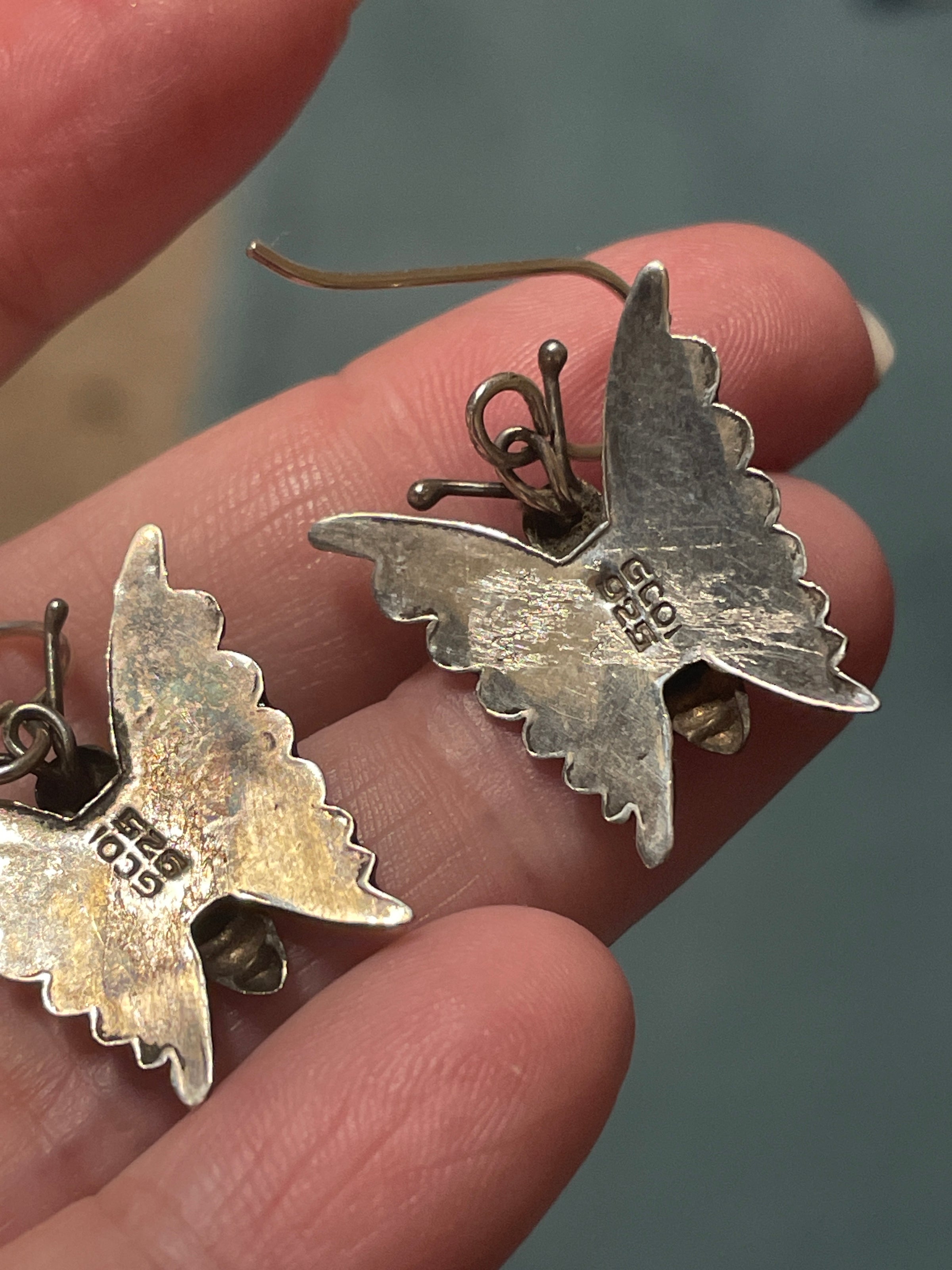 Fabulous vintage Butterfly earrings in sterling silver with lovely enameling. These measure just over 1 inch with earwires. Stamped 925 on earrings.