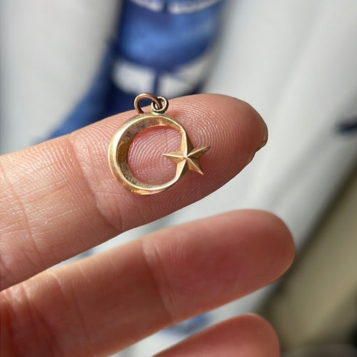 Textured Moon Star Pendant - 14k Gold - Vintage