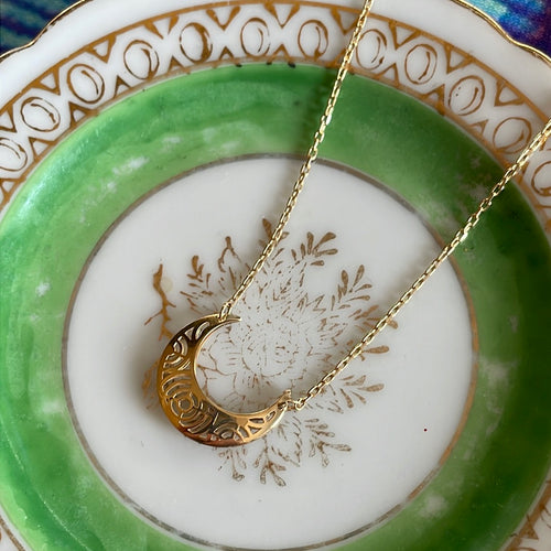 Tiny Moon Goddess Pendant - 14k Gold - Vintage