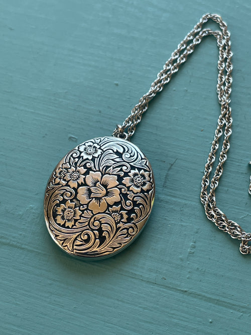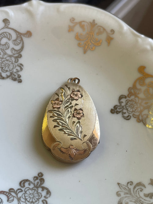 Engraved Flower Dainty Locket - Gold Filled - Vintage