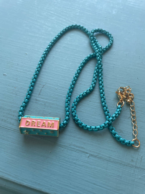 Dream Amour Happy Necklace - Turquoise Enamel - Gold Filled - Modern