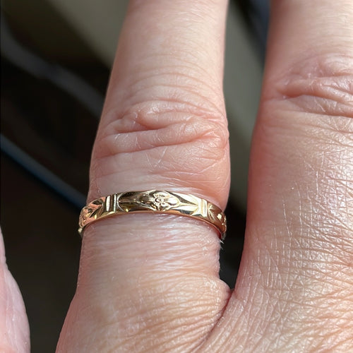 Dainty Floral Band - 9k Rose Gold - Vintage