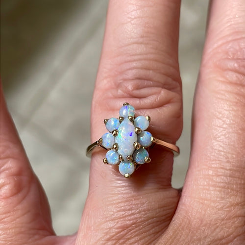 Rare Moonstone Orb Five Stone Ring - 9k Gold - Antique